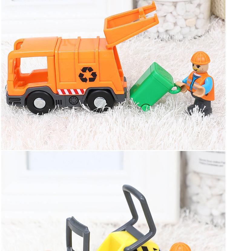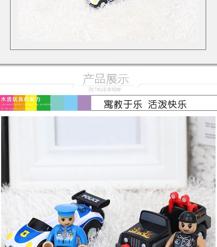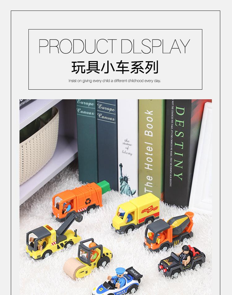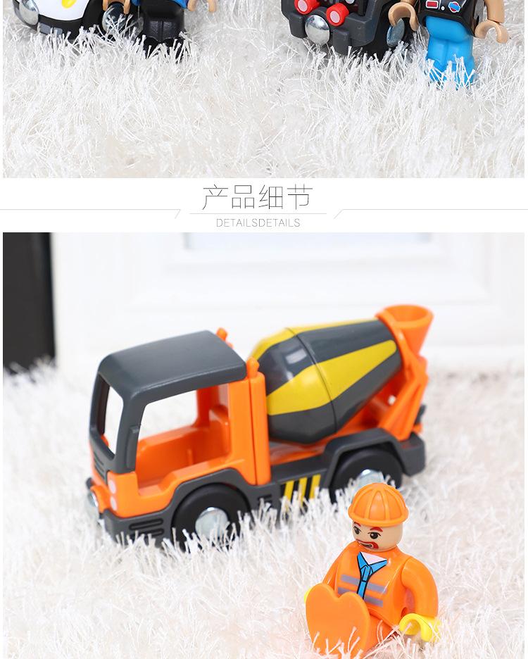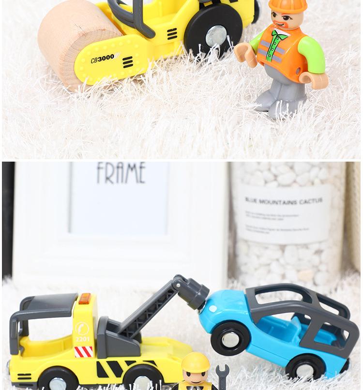 Coche de Policía de Inercia de Plástico Coche de Ingeniería Remolque con Hombrecito Compatible Pista de Tren de Madera Thomas Juguete