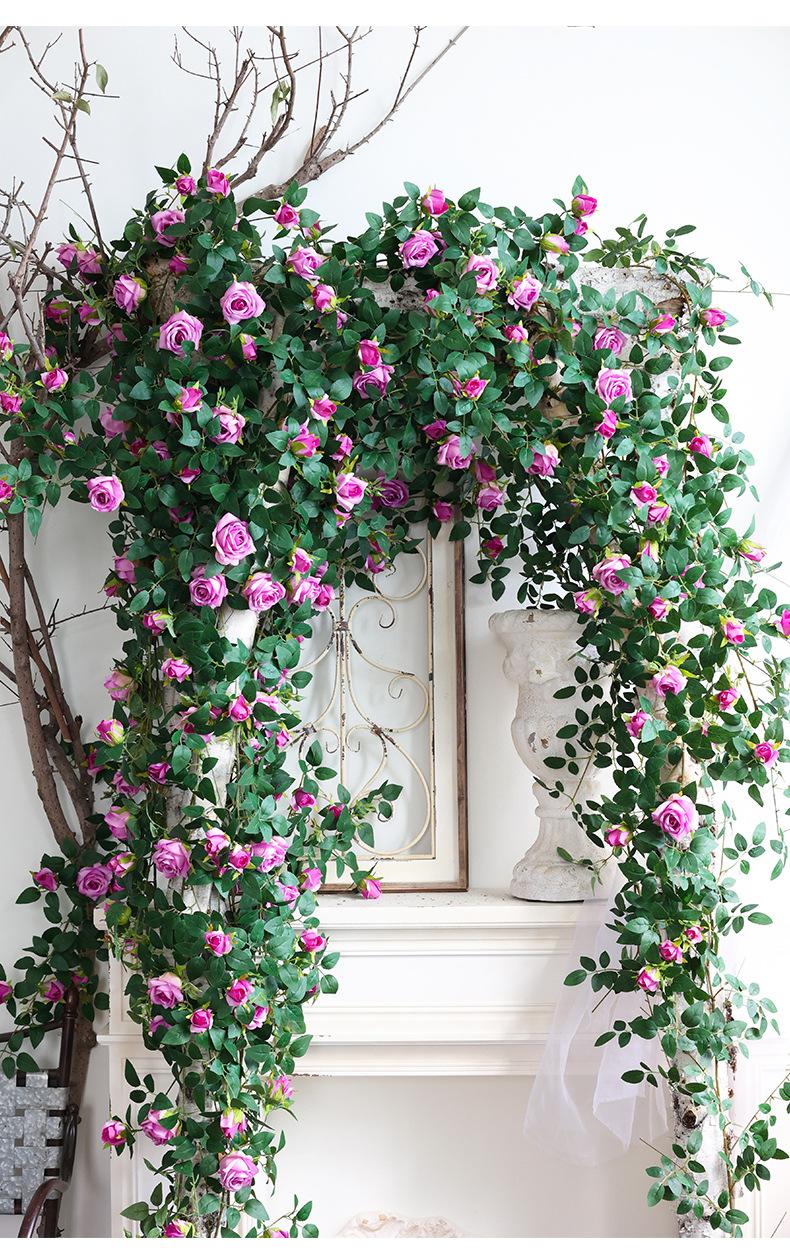 Simulación de rosa colgante de pared, flor artificial colgante, orquídea, planta verde, flor colgante de pared de plástico, decoración, planta, decoración de tubería de aire acondicionado