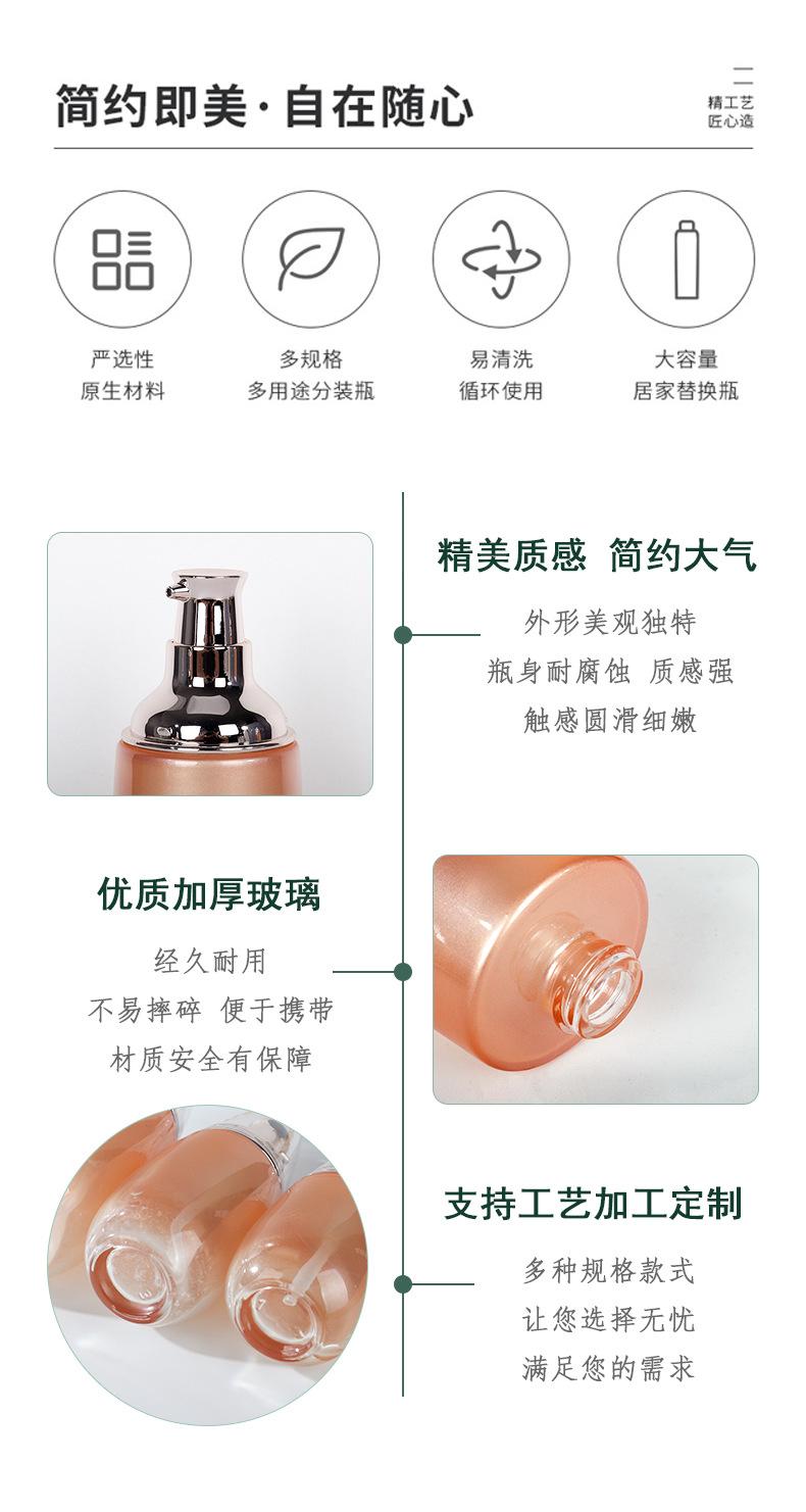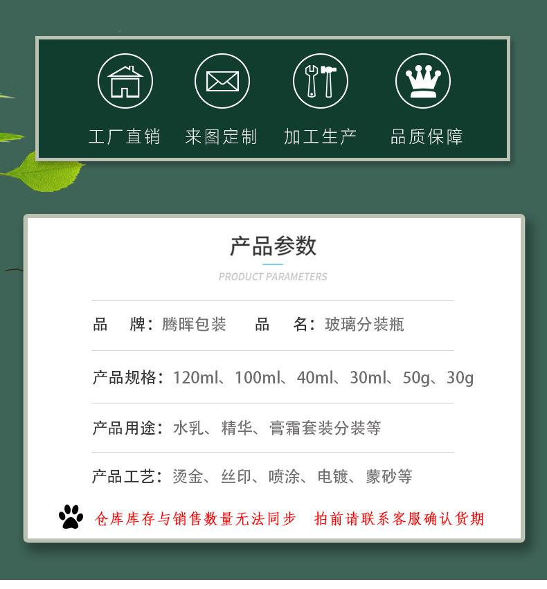 En stock, suministro de cosméticos, conjunto de botellas, productos para el cuidado de la piel, botella de vidrio, agua, loción, esencia, crema, subenvases, serie, botella vacía