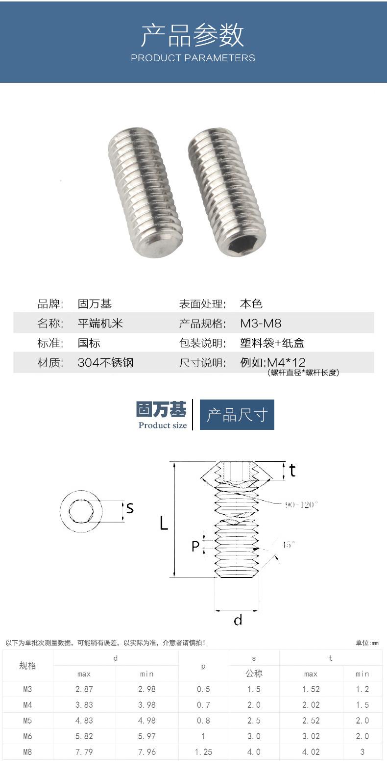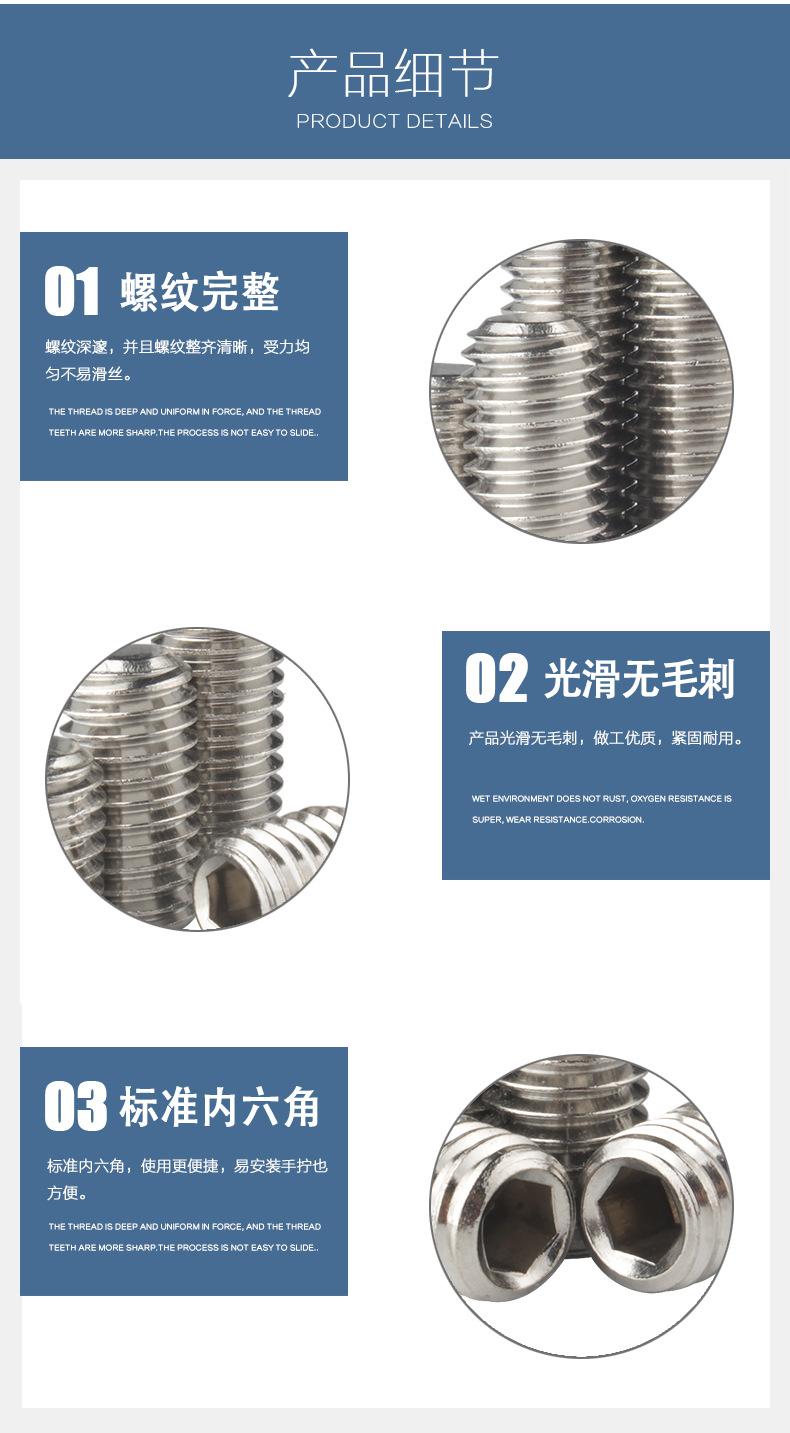 Tornillo de cabeza plana de acero inoxidable 304, tornillo de fijación, tornillo sin cabeza hexagonal, tope de alambre superior M3M4M5M6