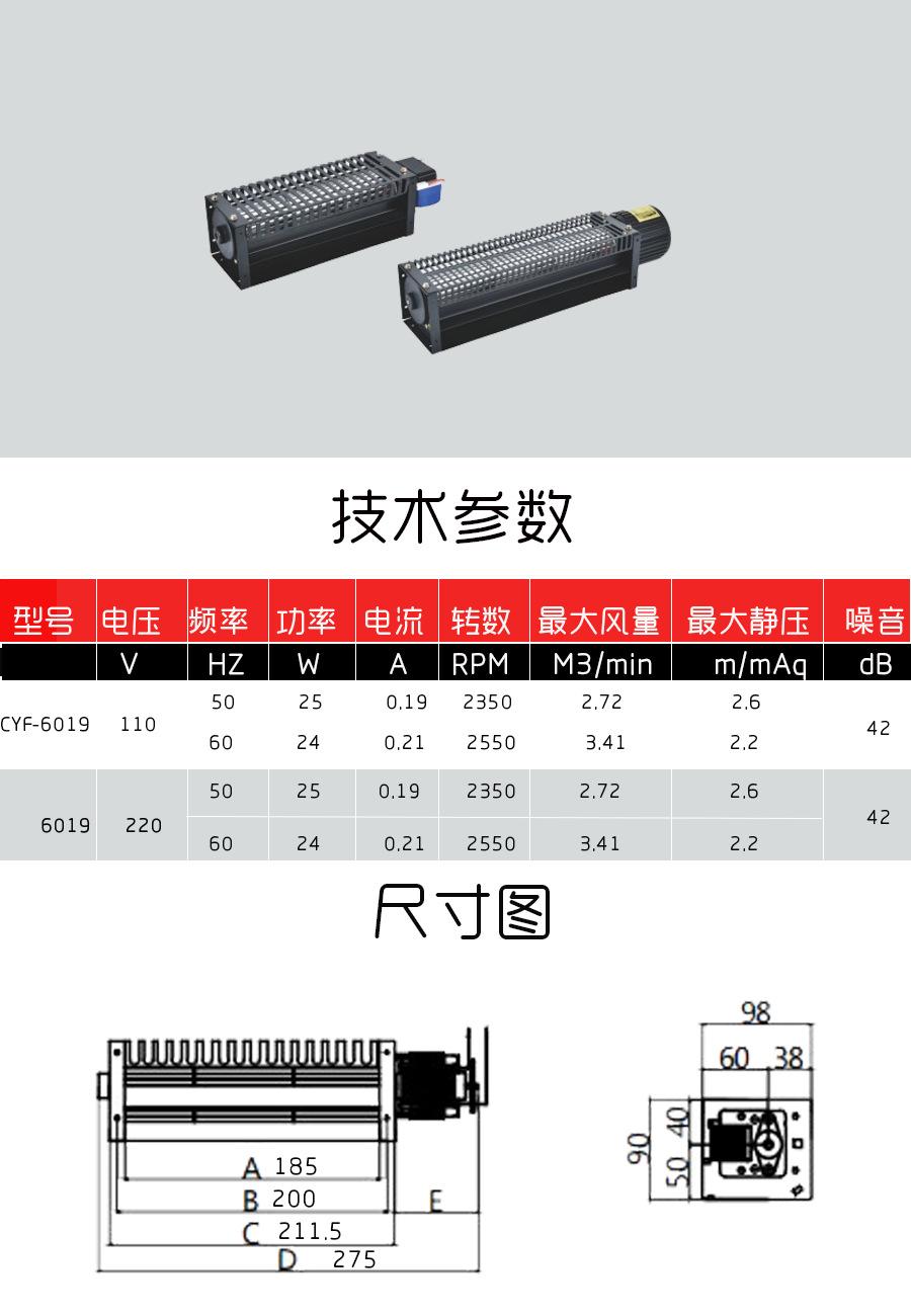 Ventas Directas del Fabricante de Origen Cyf-06019 Horno Pequeño Soplador de Flujo Cruzado de Aire Caliente 220V Ventilador de Flujo Cruzado
