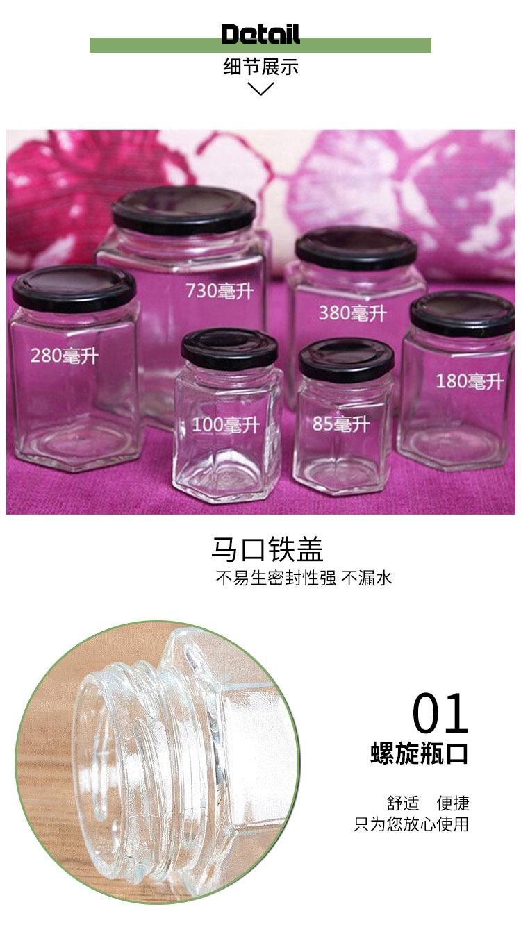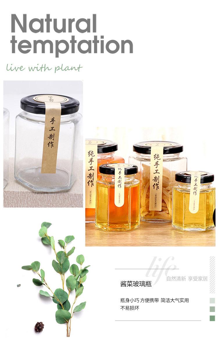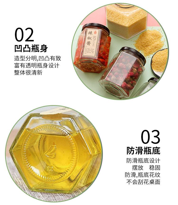 Botella hexagonal, botella de mermelada, botella de condimento, botella de miel (6 especificaciones)