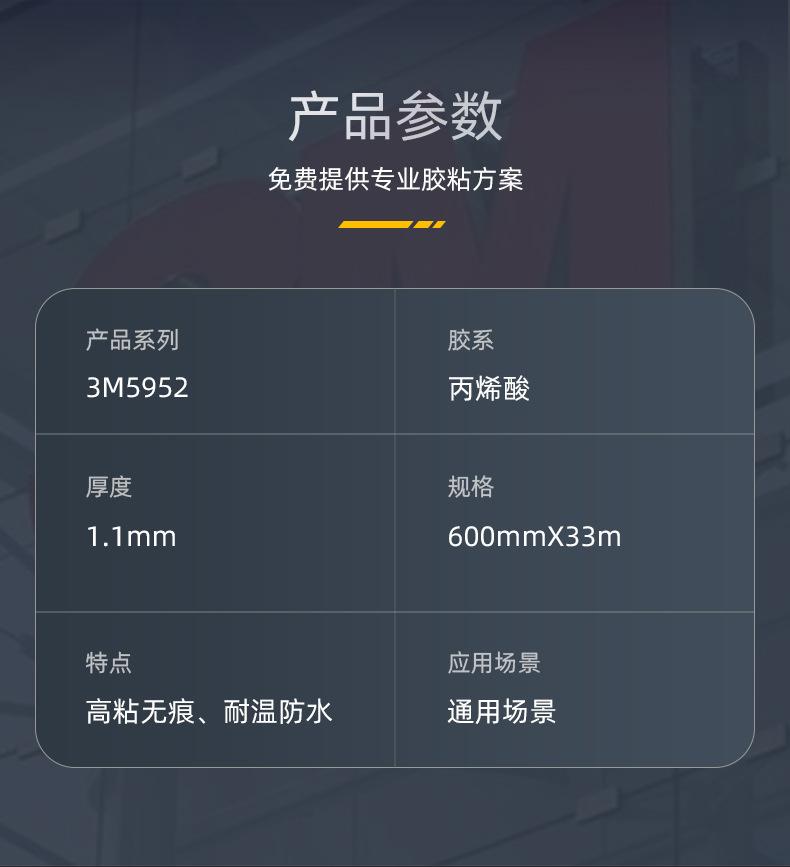 3M5952 Negro delgado impermeable adhesivo de gancho alta viscosidad duradero piezas de modificación de coche unión adhesivo de doble cara fabricante