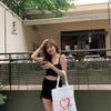 Bolsa de algodón con impresión a color creativa de fábrica, bolsa de lona de mano con impresión para hombro para mujer, logotipo impreso