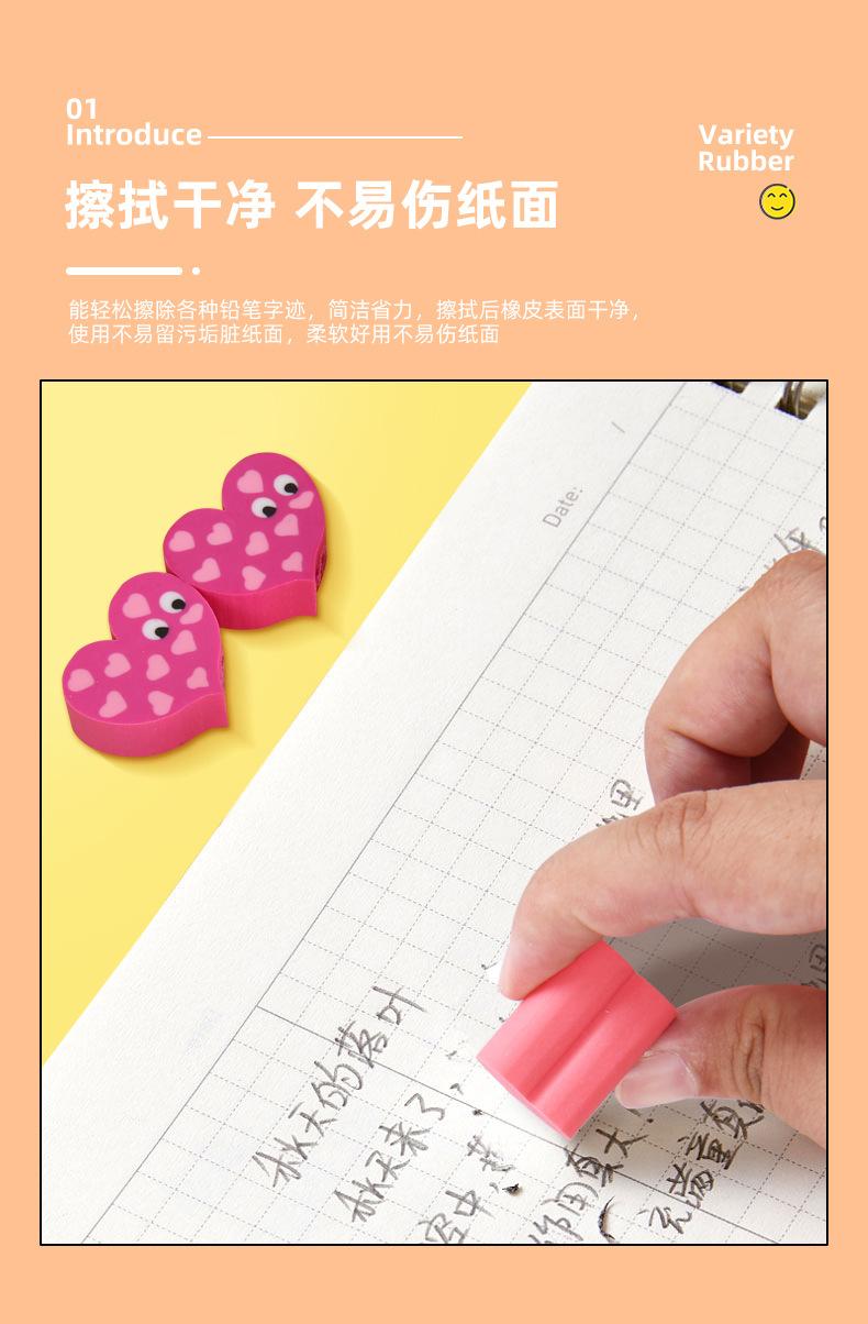 Goma de borrar creativa Love para estudiantes de primaria, Goma de borrar linda de dibujos animados, Goma de borrar personalizada respetuosa con el medio ambiente, Sin migas, Súper limpia