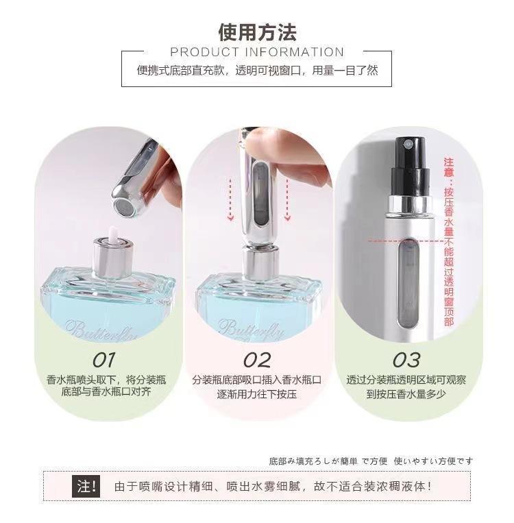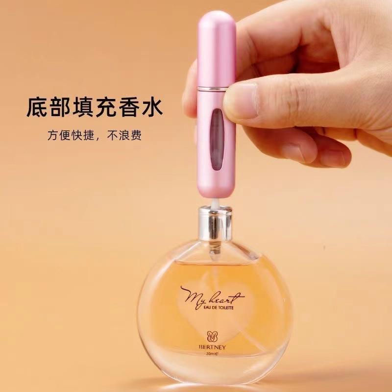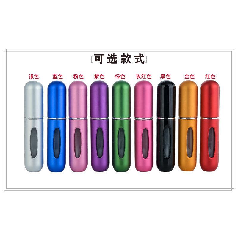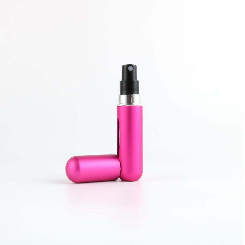 Botella de perfume portátil de 5 ml con atomizador automático, recargable, de aluminio, vacía.