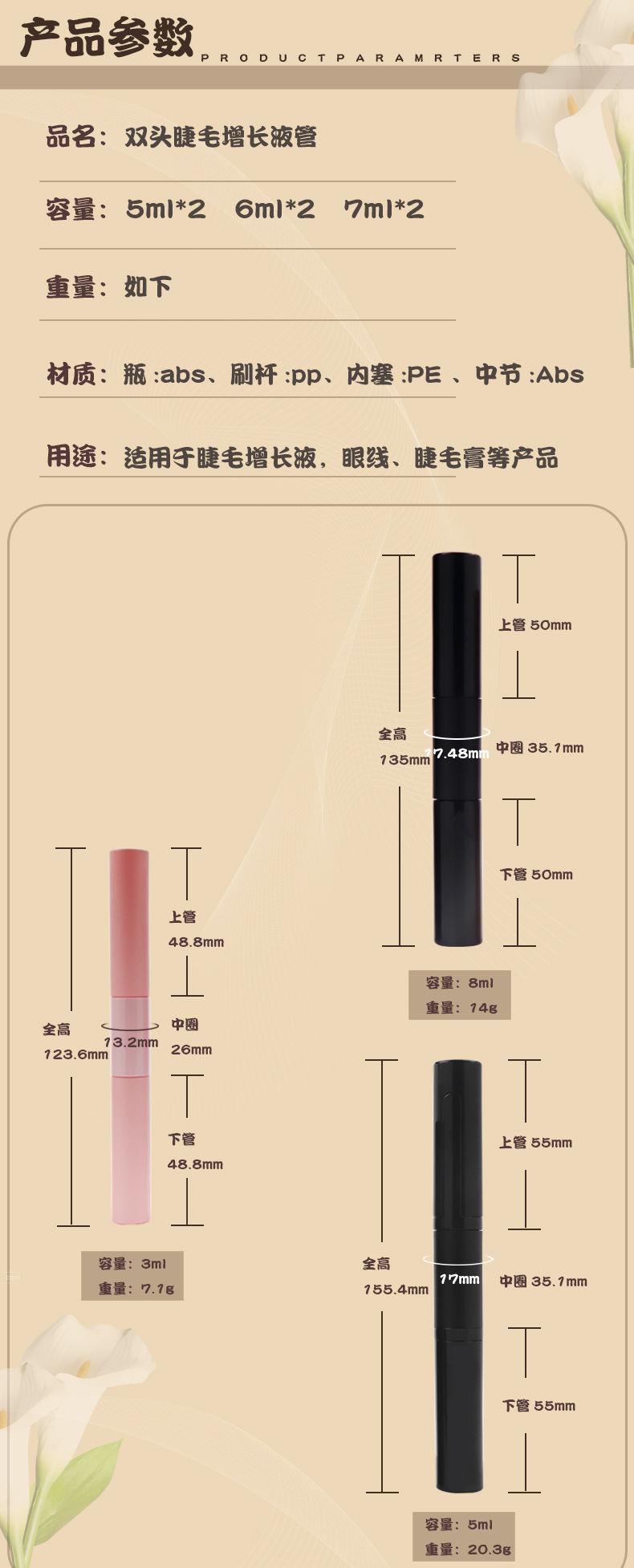 Nuevo tubo vacío de líquido para el crecimiento de pestañas de doble cabezal, de doble uso, de 5 ml + tubo de rímel de 5 ml, botella de líquido para el crecimiento de pestañas, cosméticos