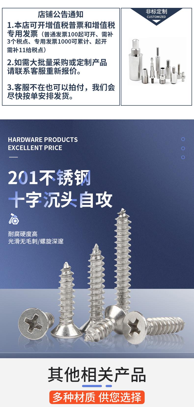 Tornillos Autoperforantes de Acero Inoxidable 201 Venta al por Mayor Tornillos de Cabeza Avellanada Cruz Tornillos de Cabeza Plana Cruz M2/M3/M4/M6