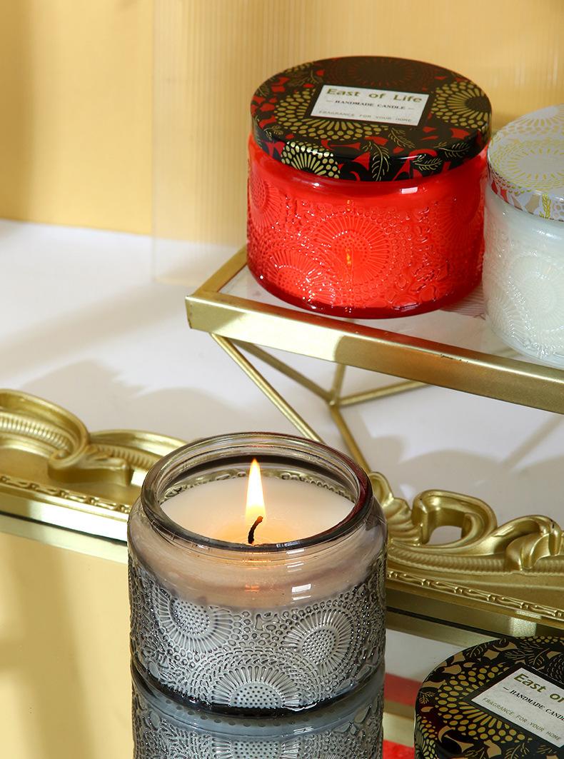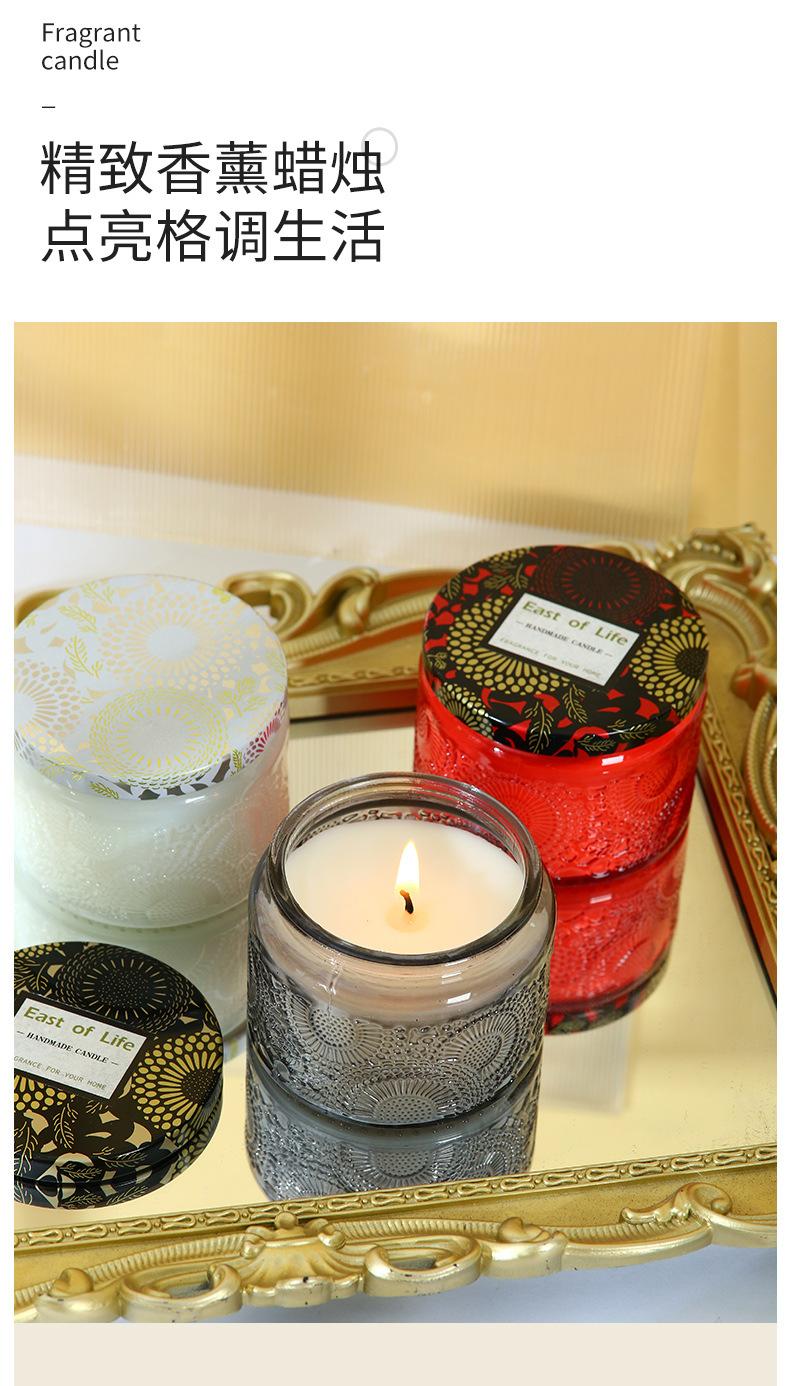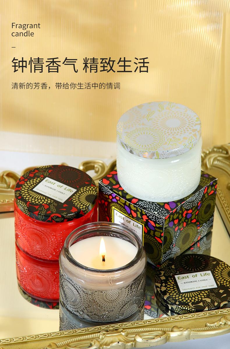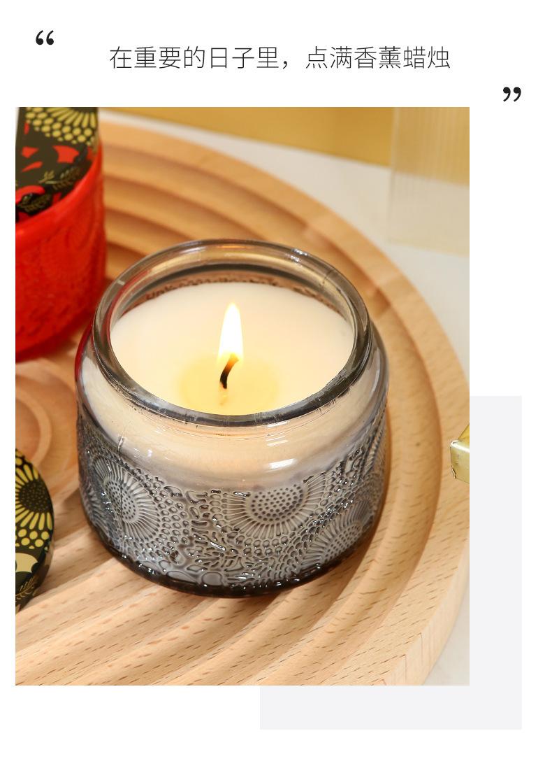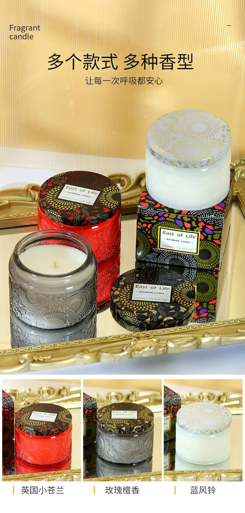 Vela de soja hecha a mano de vidrio repujado, aromaterapia, sin humo, decoración para el hogar, hotel, fragancia, regalo de cumpleaños al por mayor