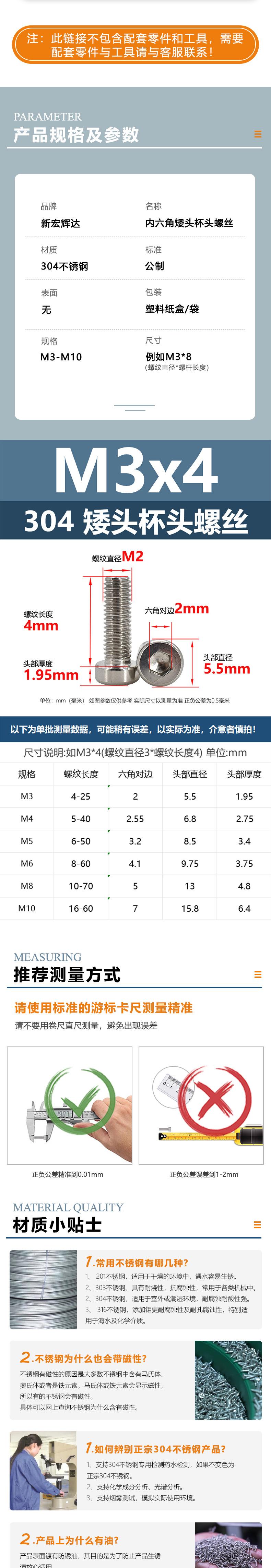 M3 * 4(50)(304 stainless steel), M3 * 5(50)(304 stainless steel), M3 * 6(50)(304 stainless steel), M3 * 8(50)(...