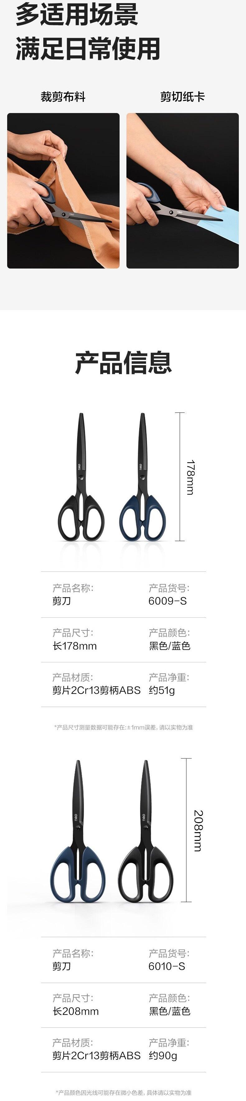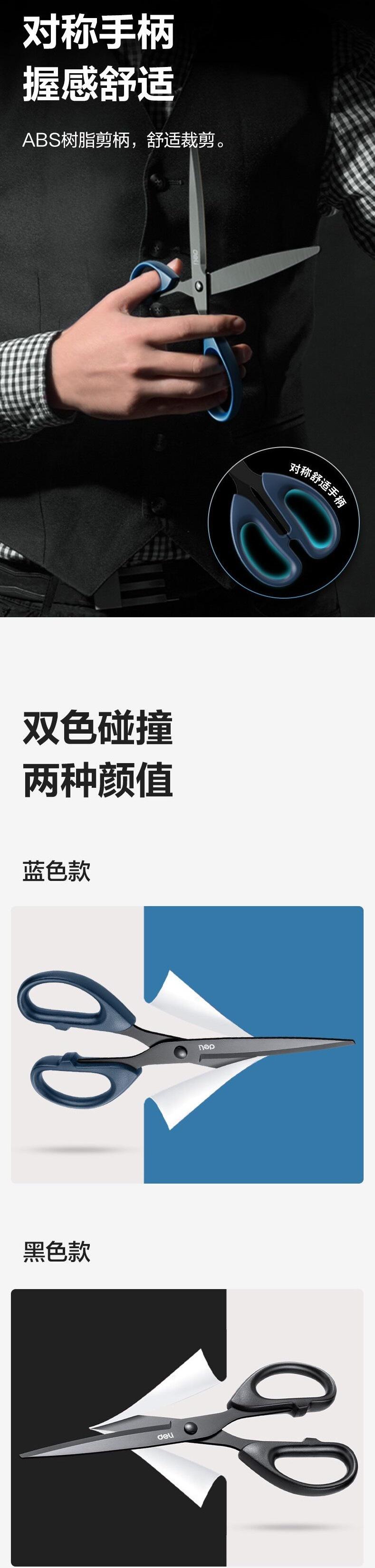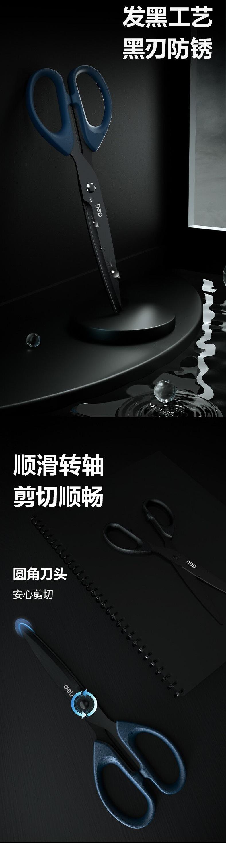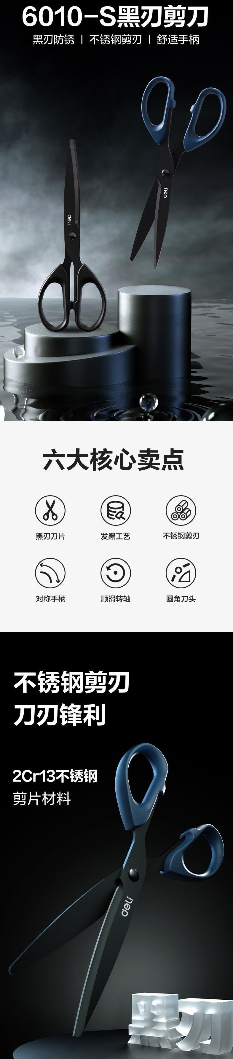 Tijeras Deli 6010-S de hoja negra, de acero inoxidable, para uso doméstico y de oficina, longitud de 210 mm, para cocina.