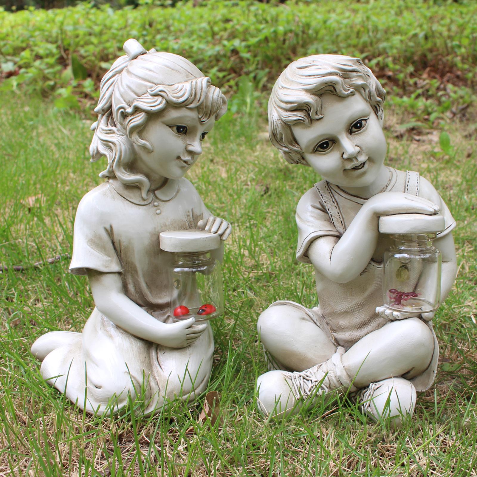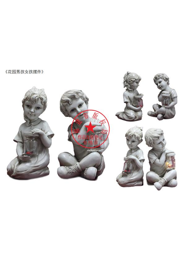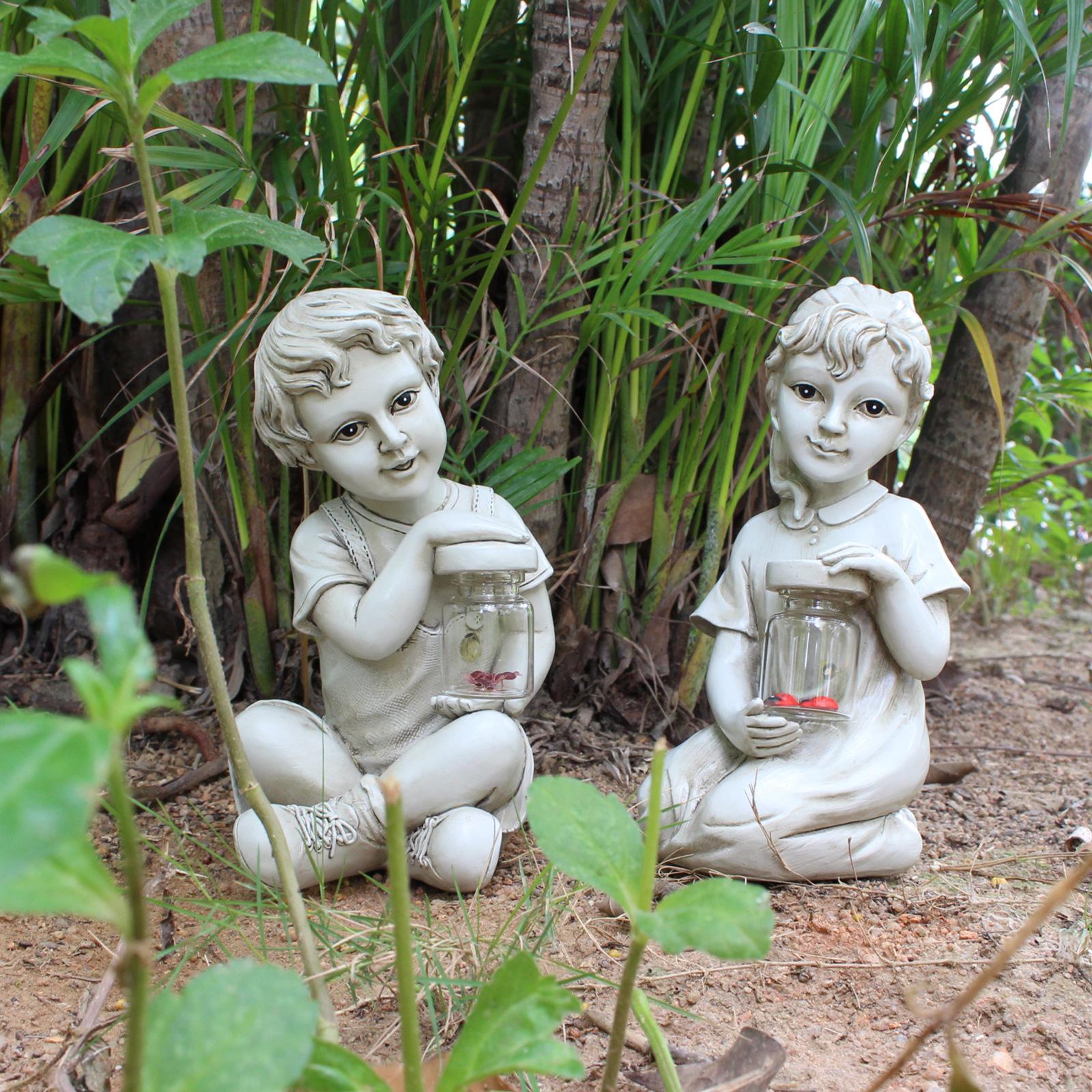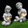 [Nombre] Adornos luminosos solares de resina de niño y niña