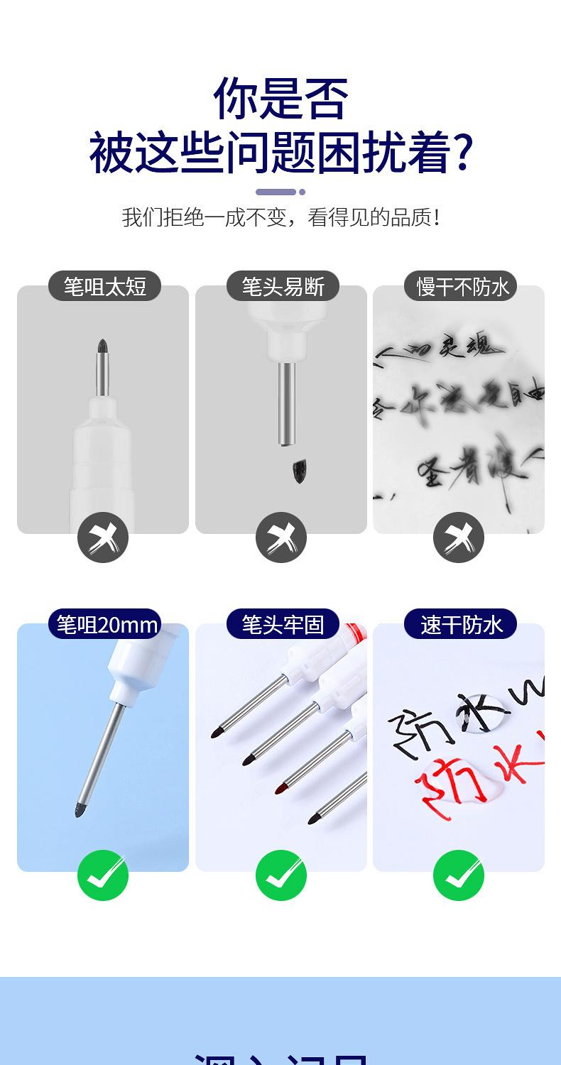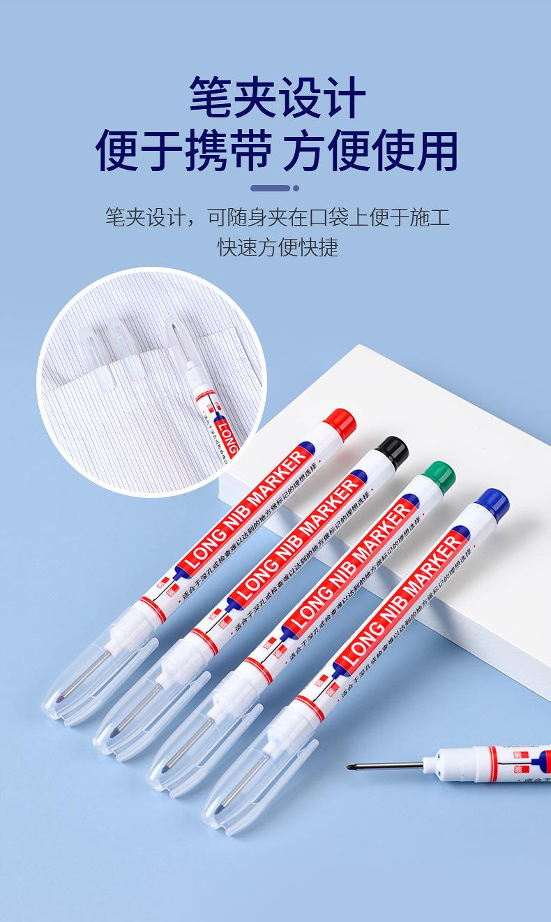 Bolígrafo marcador de cabeza larga, venta al por mayor, bolígrafo de aceite, ferretería, bolígrafo para carpintería, bolígrafo marcador de azulejos de baño, bolígrafo marcador de agujeros profundos