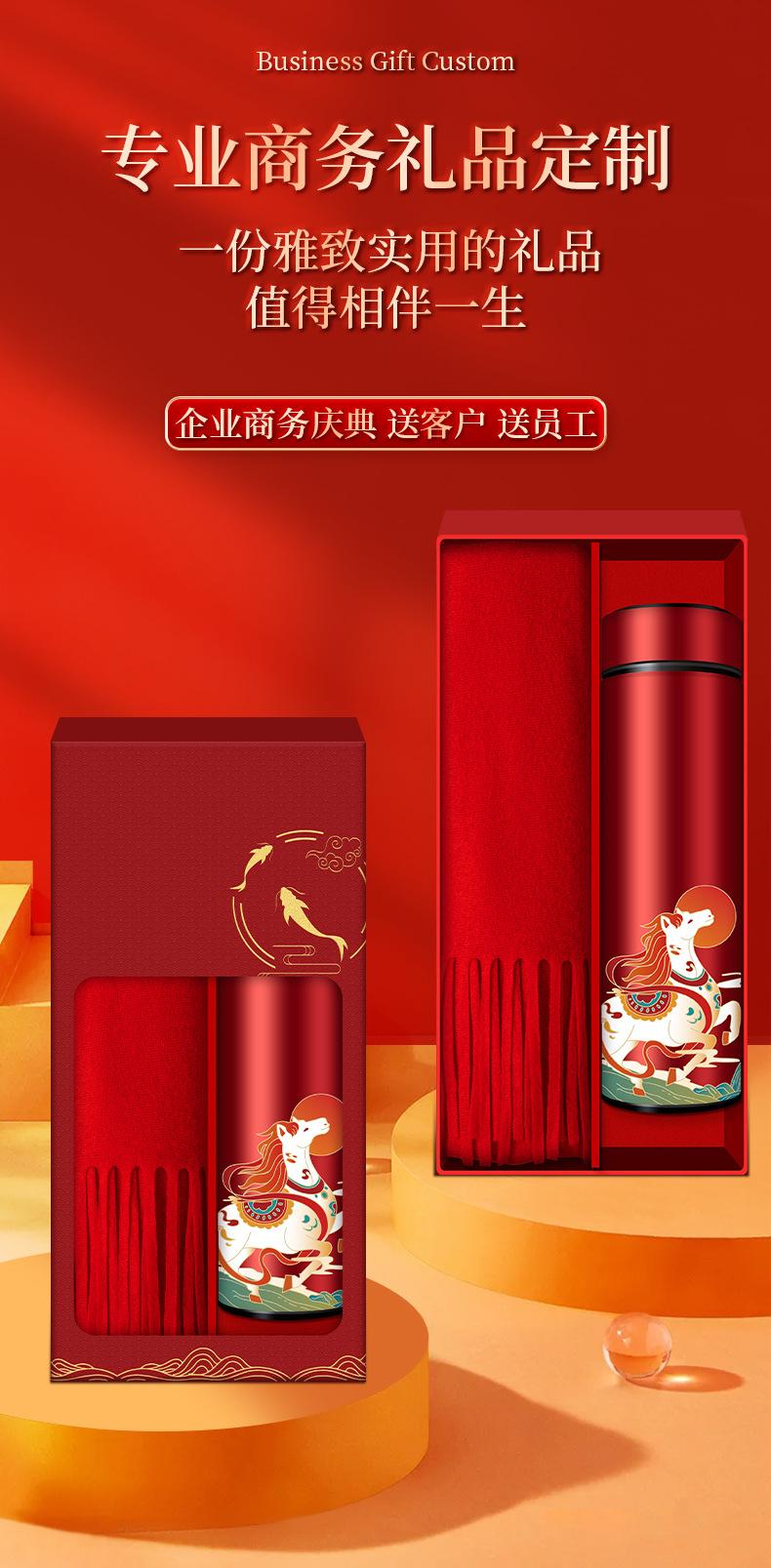 [unpatterned window gift box] screen display thermos cup + chinese red scarf, [unpatterned window gift box] ei...