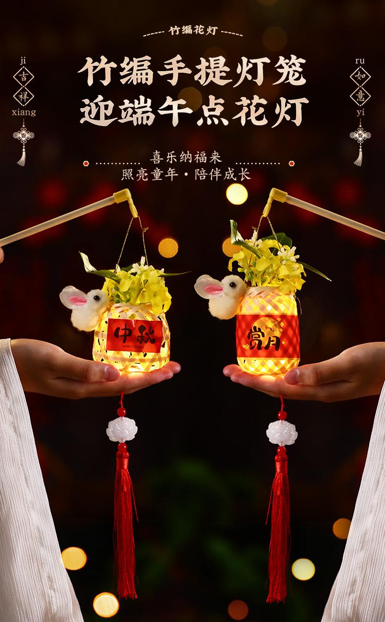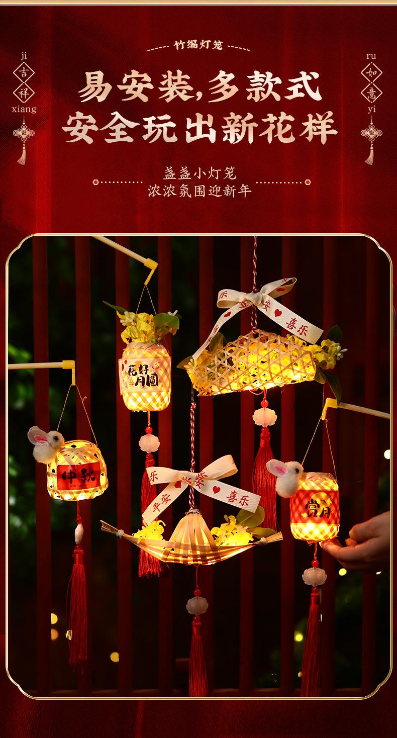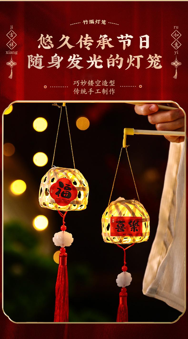 Farol de Bambú Estilo Antiguo Bolso Festival de Medio Otoño Luminoso Hecho a Mano DIY Terminado Mini Paquete de Material Linterna para Niños Dinastía Han
