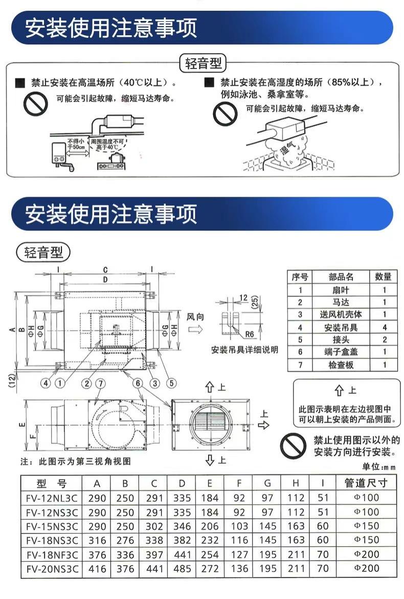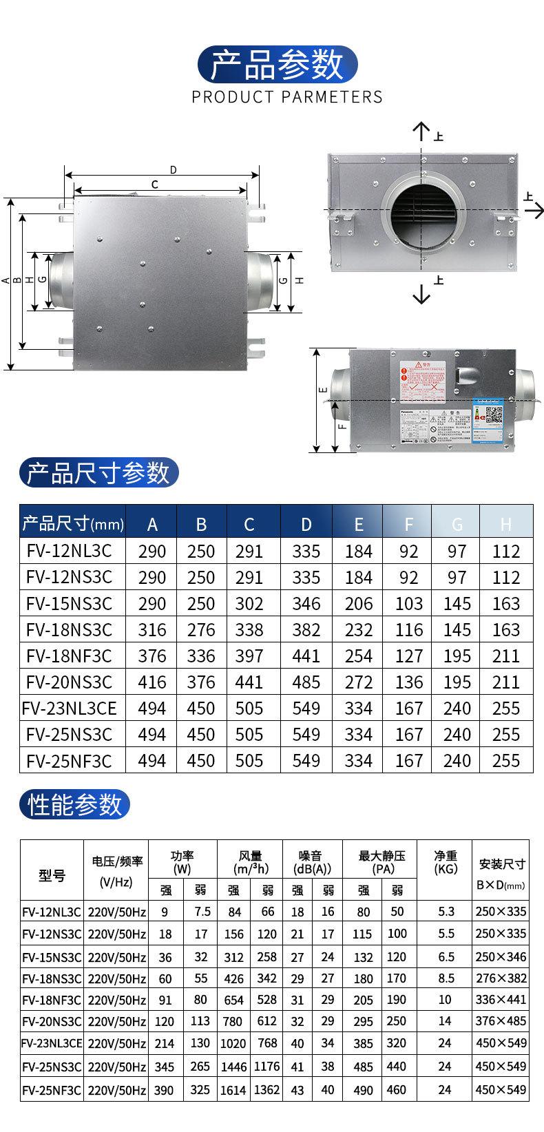 FV-12NL3C/air volume 84, FV-12NS3C/air volume 156, FV-15NS3C/air volume 312, FV-18NS3C/air volume 426, FV-18NF...