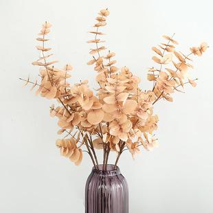Guía de ruta para bodas, flores artificiales, hojas de eucalipto de plástico, flores artificiales, decoración del hogar, hojas de eucalipto artificiales de color caramelo de 3 tenedores