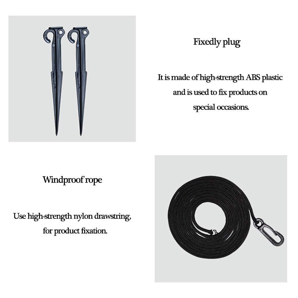 Accesorios del producto: 1 ventilador inflador; 1 transformador; 3 luces LED; 4 estacas para suelo; 4 cuerdas de tensión