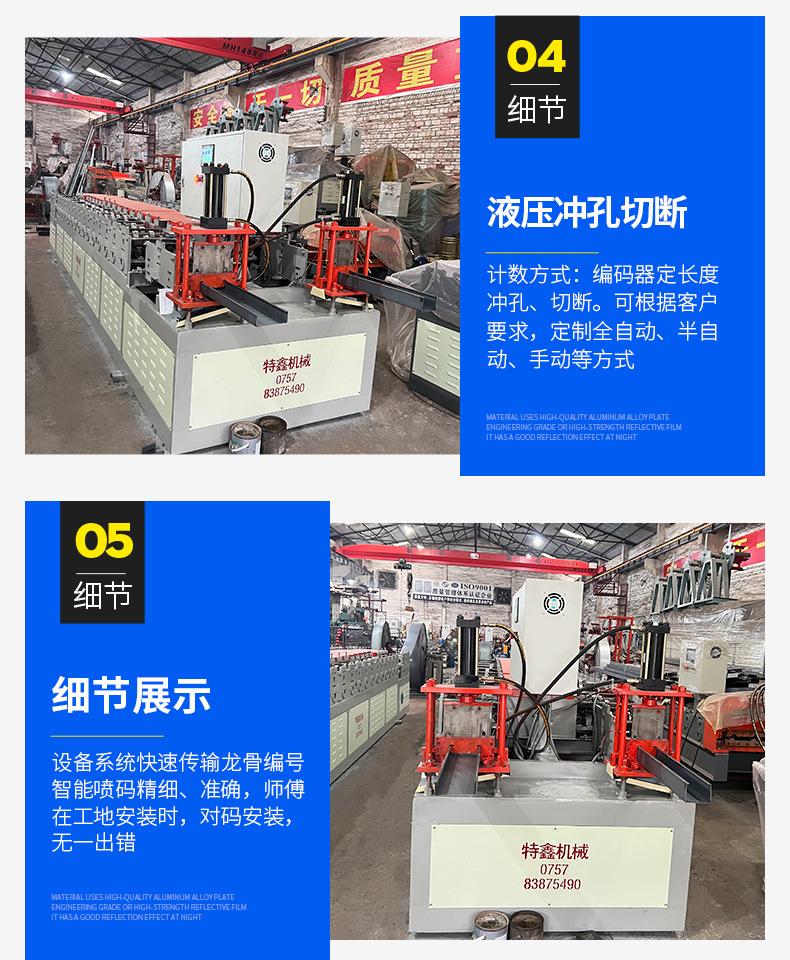 Los productos principales de Foshan Texin Machinery Equipment Co., Ltd. son: equipos de conformado en frío de metal, equipos de estructura de acero, maquinaria para persianas enrollables, máquinas de acero en forma de C, Z, U, V, W, máquinas para tejas con hebilla oculta, máquinas para tejas de acero de color, máquinas para barandillas de carreteras, máquinas para estantes, máquinas para paneles de carruajes, máquinas para paneles de contenedores, máquinas para accesorios de refrigeradores, máquinas de quillas, máquinas para pisos, máquinas para marcos de puertas, máquinas para puertas y ventanas antirrobo, máquinas tragamonedas para invernaderos, máquinas europeas de puertas enrollables compuestas, máquinas para columnas de estantes, máquinas para tejas esmaltadas de acero de color, máquinas para hebillas de techo, máquinas para quillas de acero ligero, máquinas para paneles de techo con hebilla oculta, máquinas para pisos, máquinas para rieles guía de bolas, máquinas para tubos de formas especiales, varios equipos de doblado en frío de láminas de metal de formas especiales, etc.
