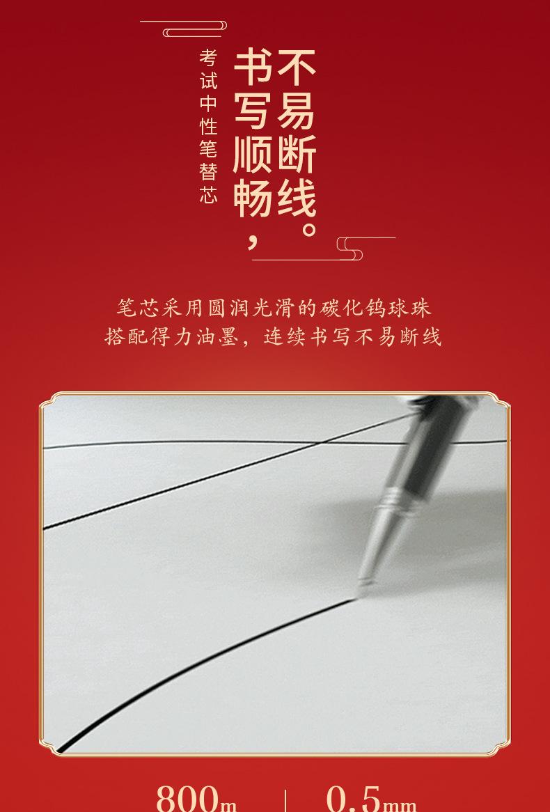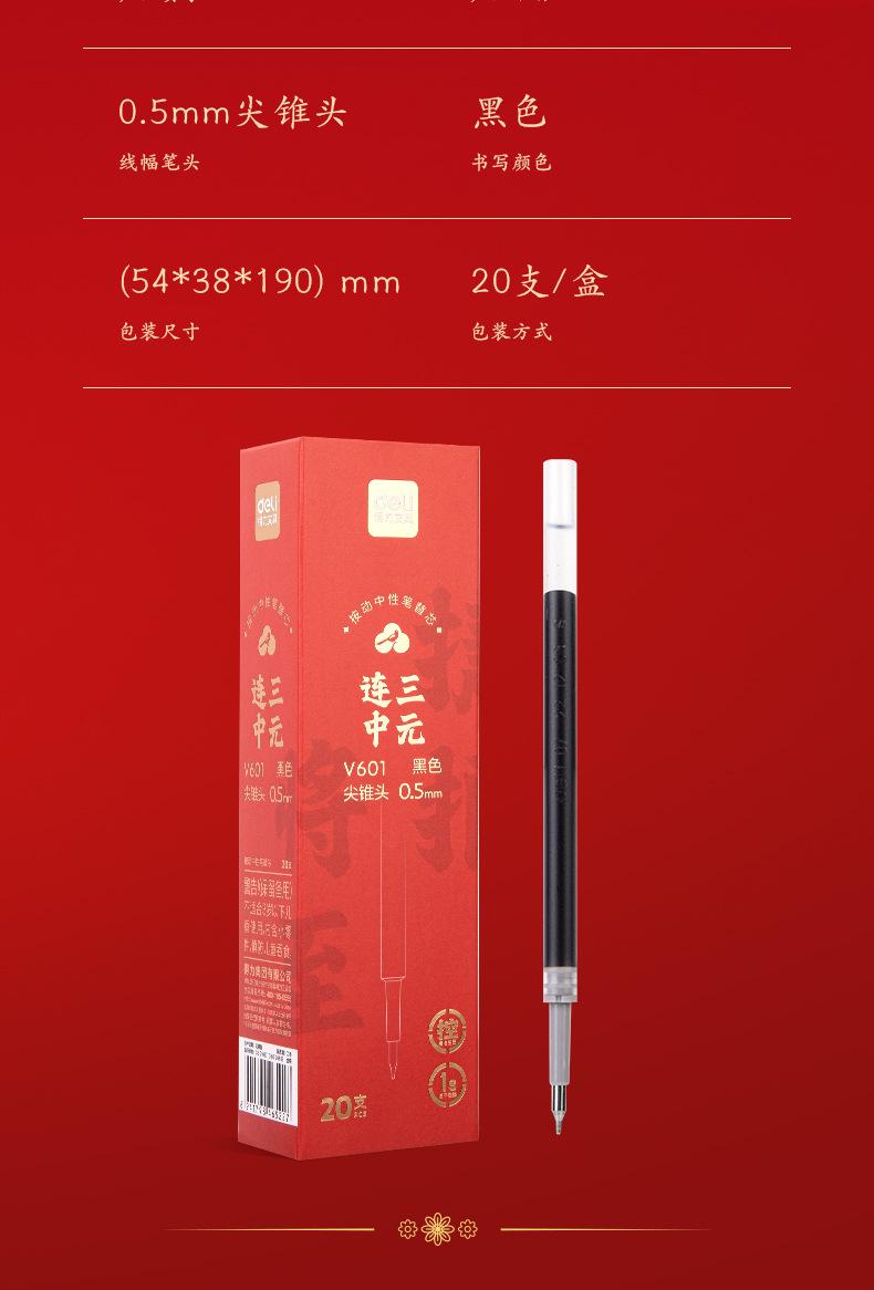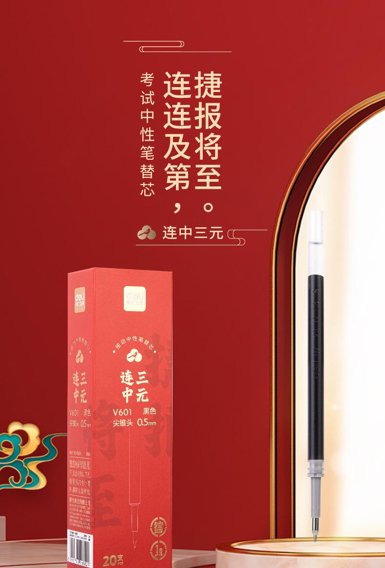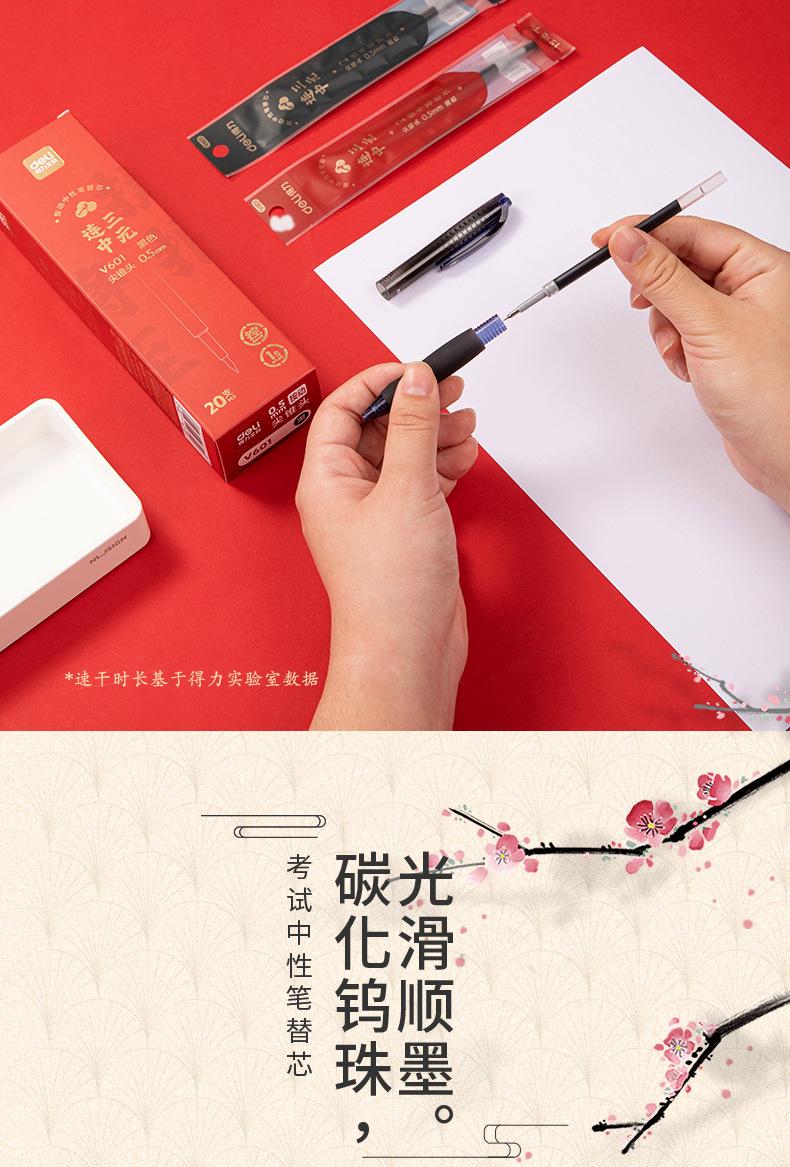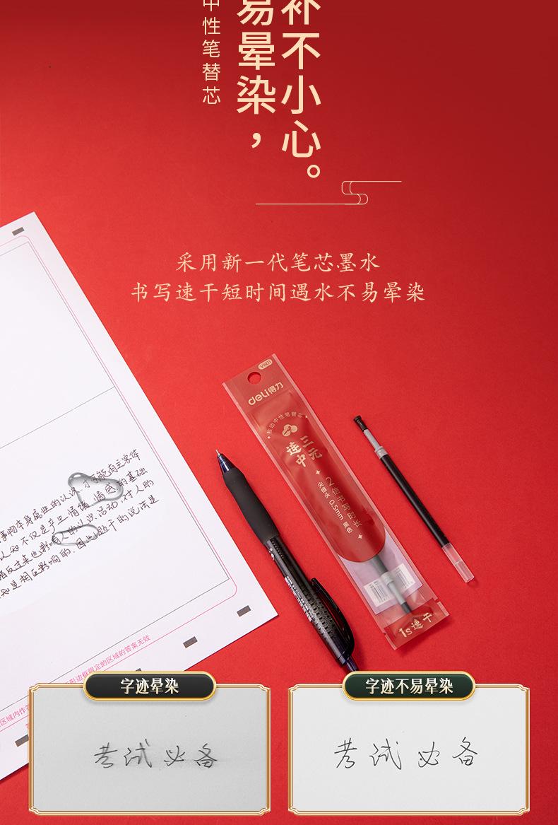 Recambio Deli Press para bolígrafo de tinta negra de carbono Lian Zhongli Test Neutral de 0,5 para estudiantes