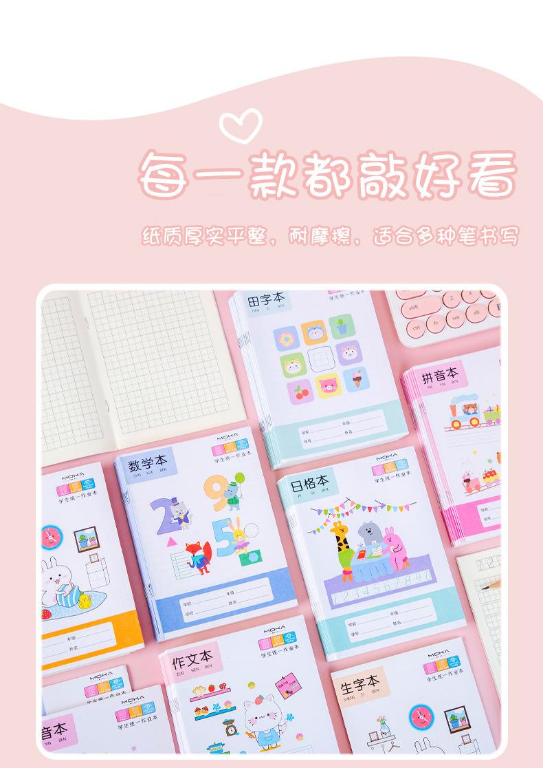 MOKA English book, Large math book, Large Composition Book, Large Chinese book, Small size small regular scrip...