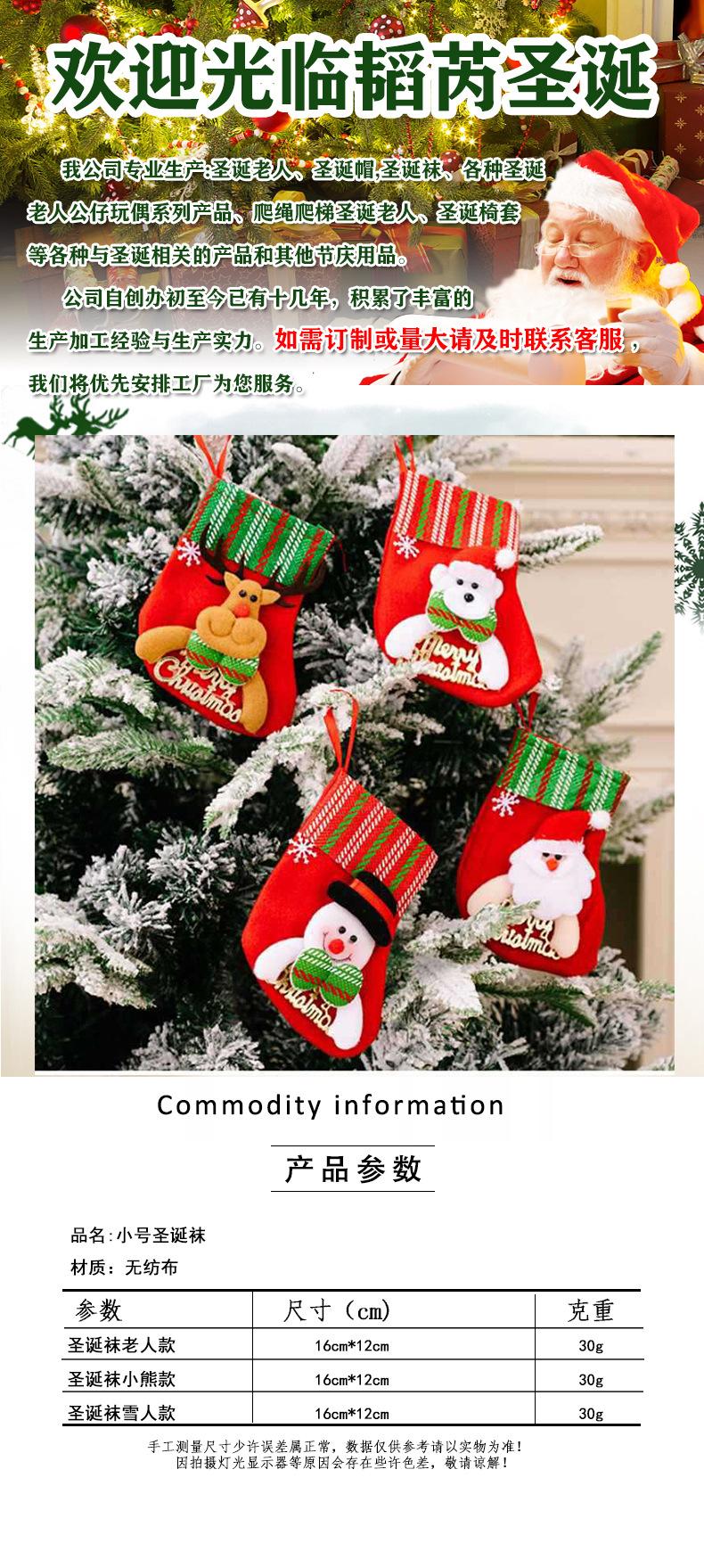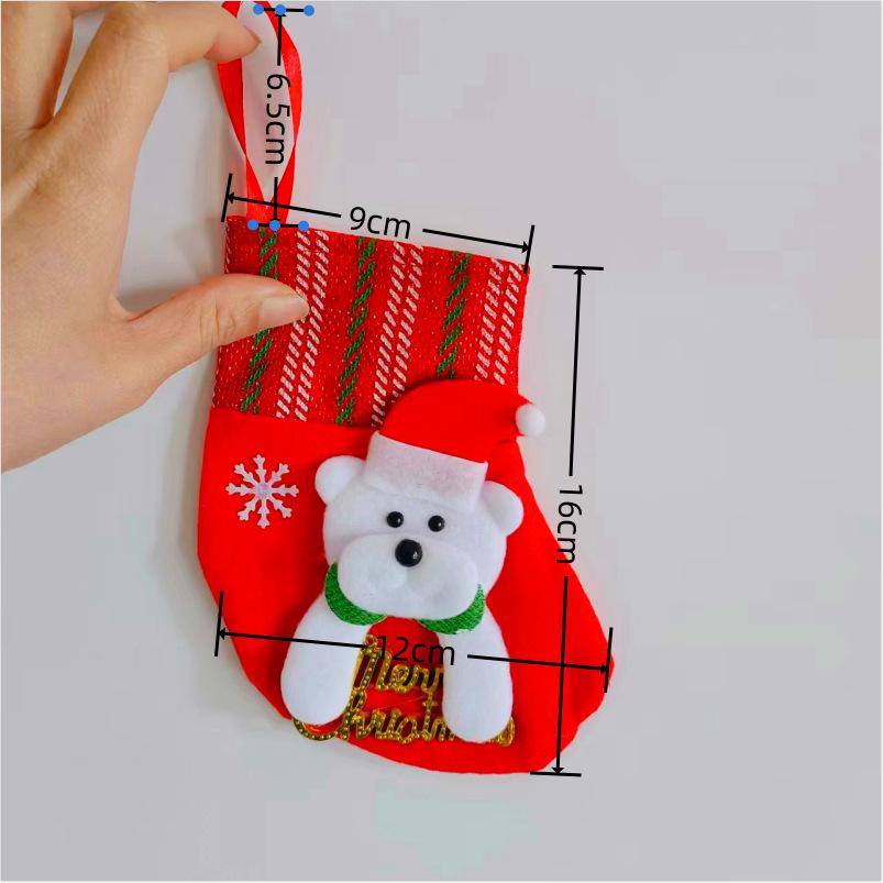 Calcetines de Navidad pequeños transfronterizos Bolsa de regalo de Navidad de muñeco de nieve de Papá Noel Decoración navideña Colgante para árbol de Navidad Bolsa para dulces