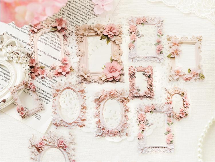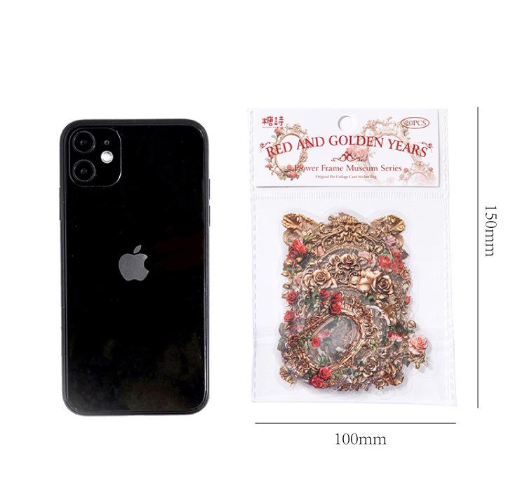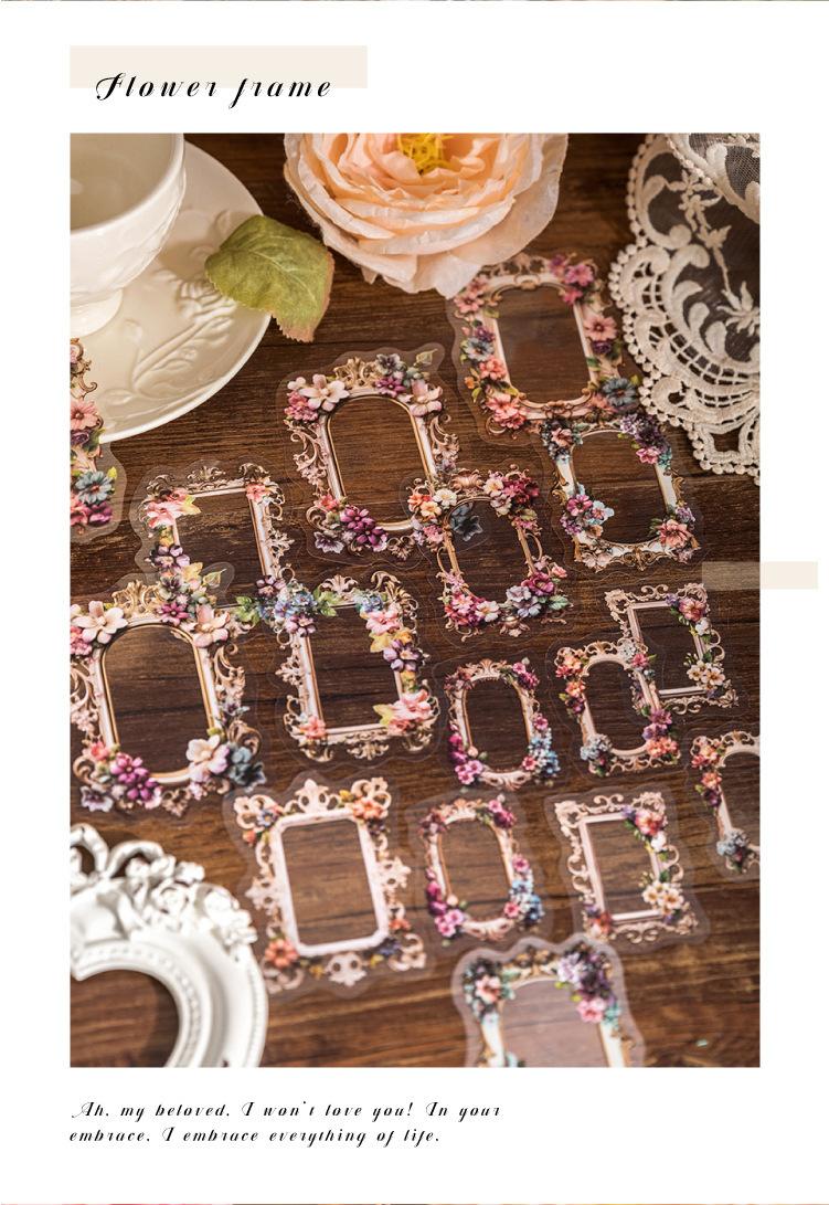 Compra Paquete de 20 pegatinas de PET con marco de flores de Sugar Poetry, serie de museo, cuentas de flores hechas a mano, material de bricolaje, pegatinas decorativas, 6 al por mayor en Joom.pro