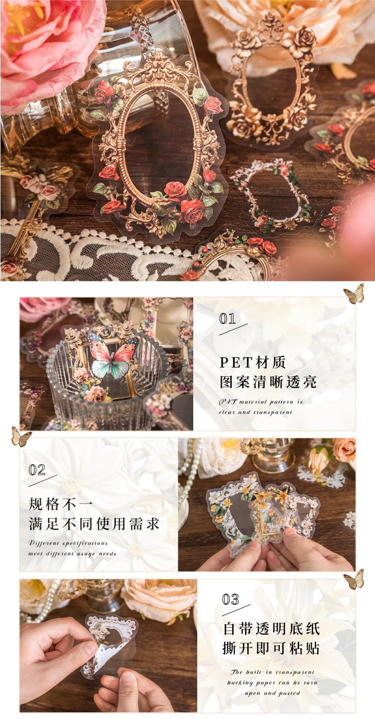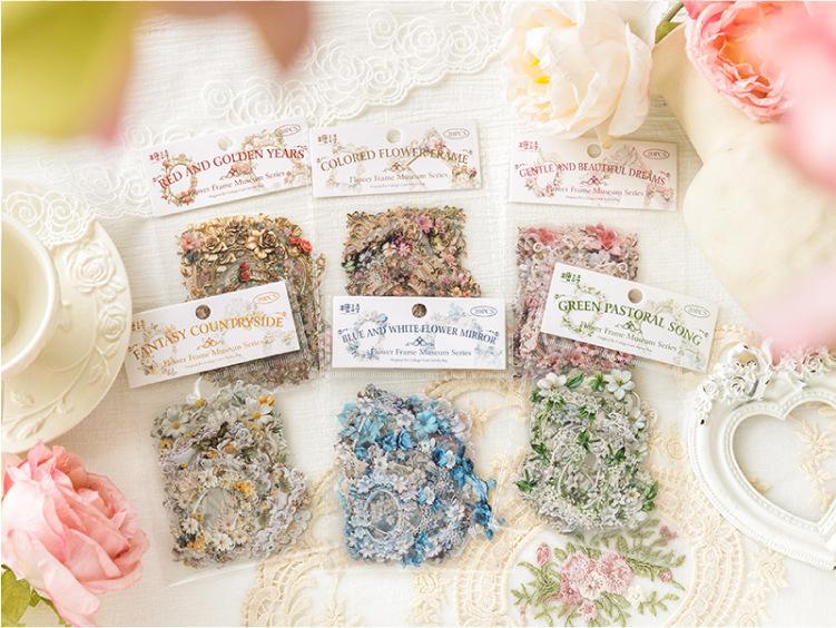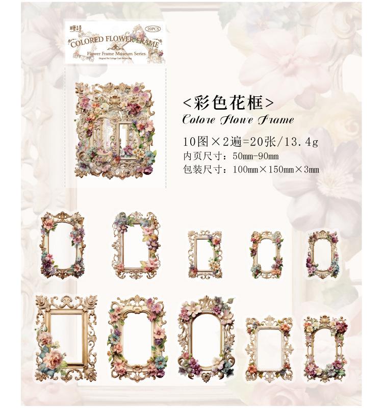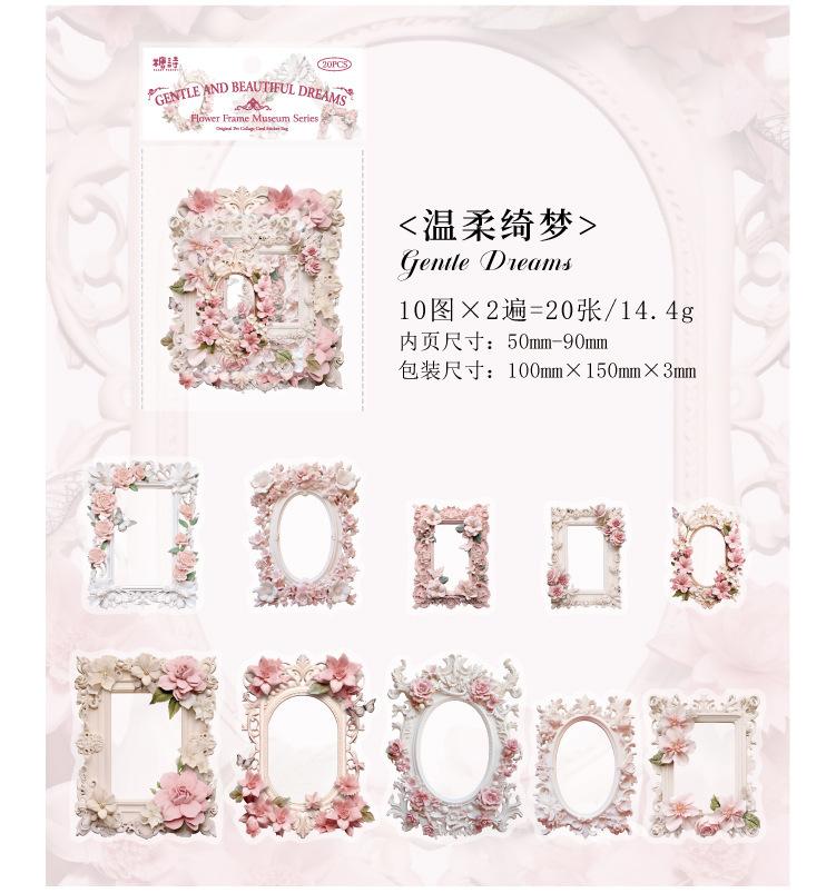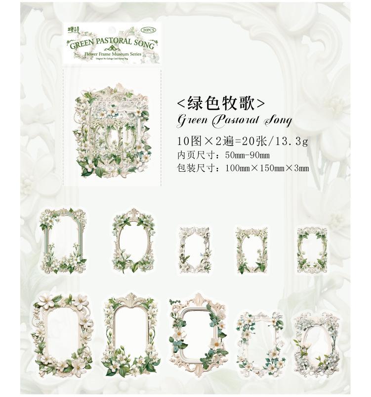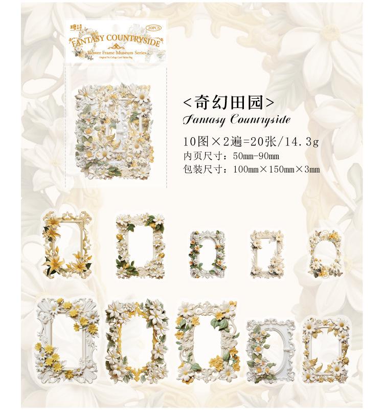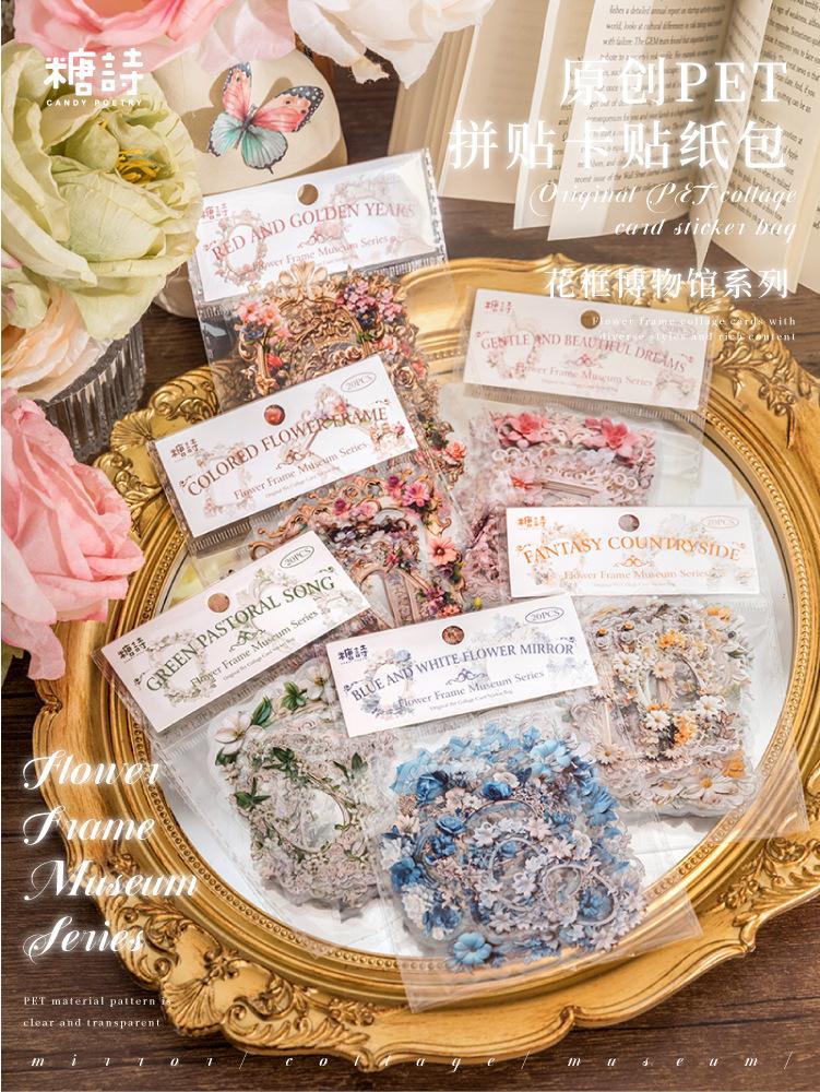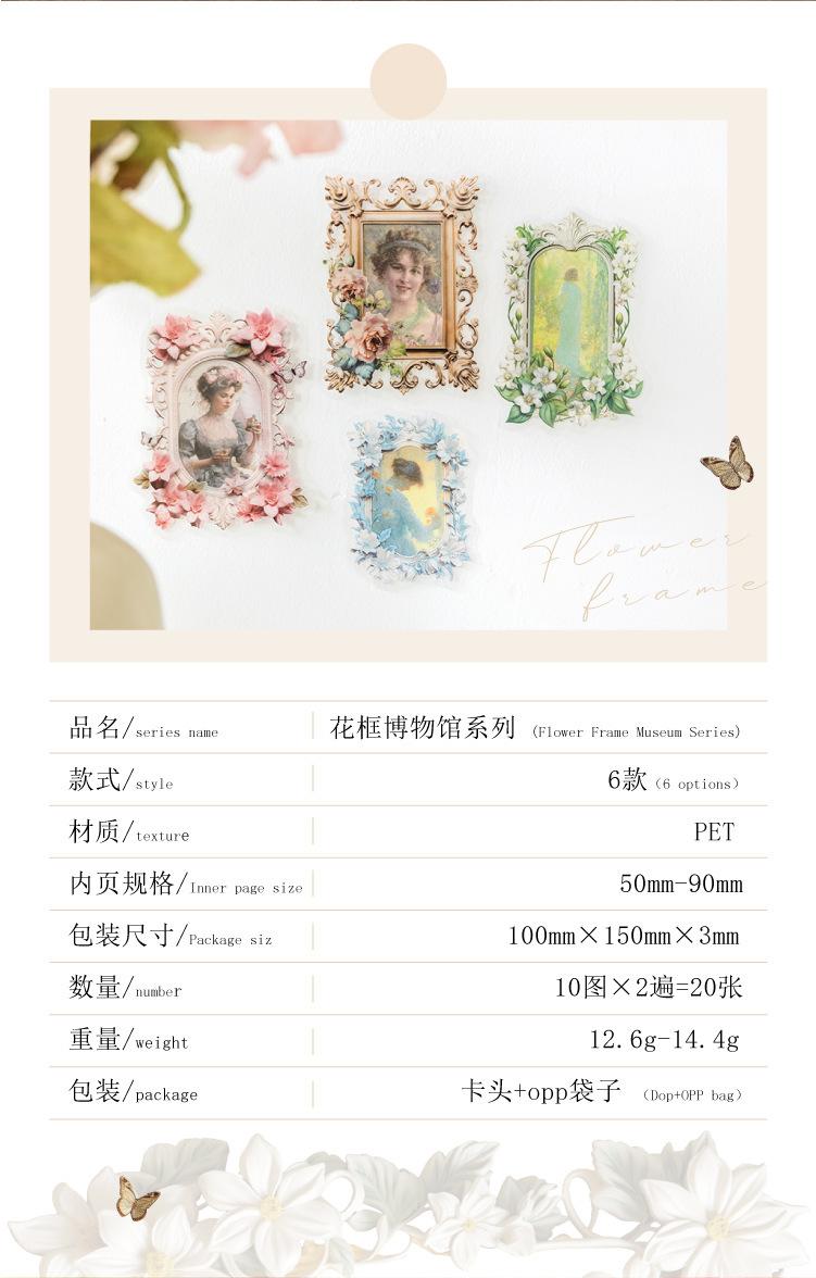 Paquete de 20 pegatinas de PET con marco de flores de Sugar Poetry, serie de museo, cuentas de flores hechas a mano, material de bricolaje, pegatinas decorativas, 6