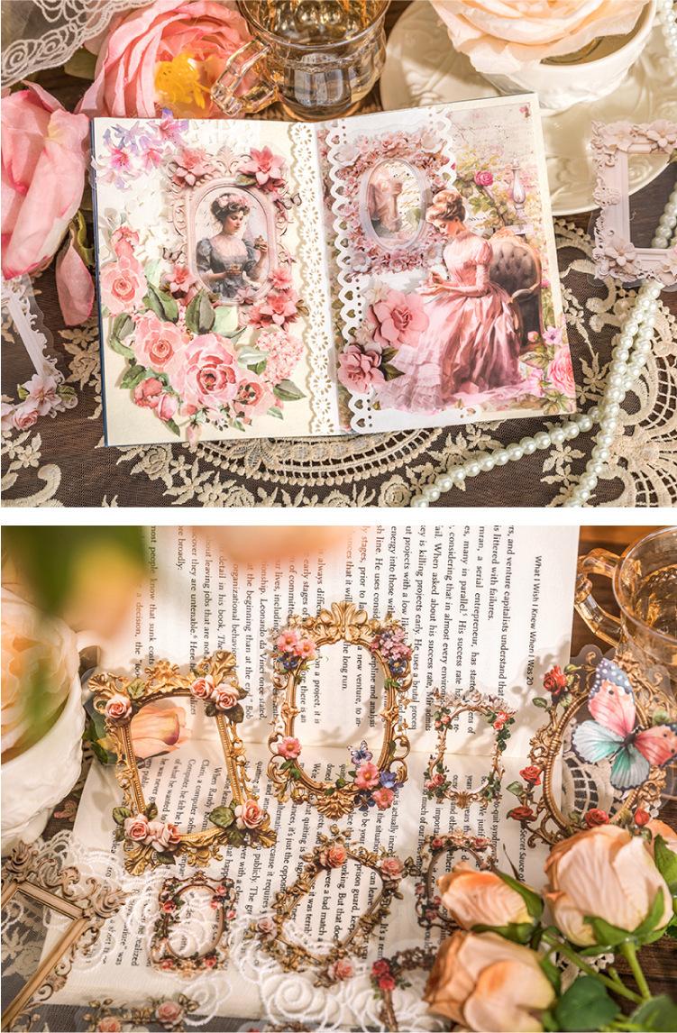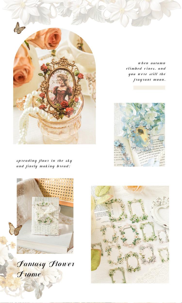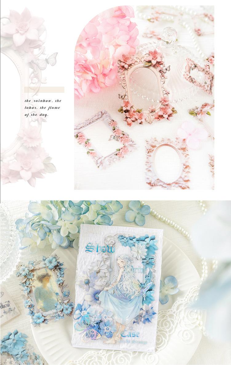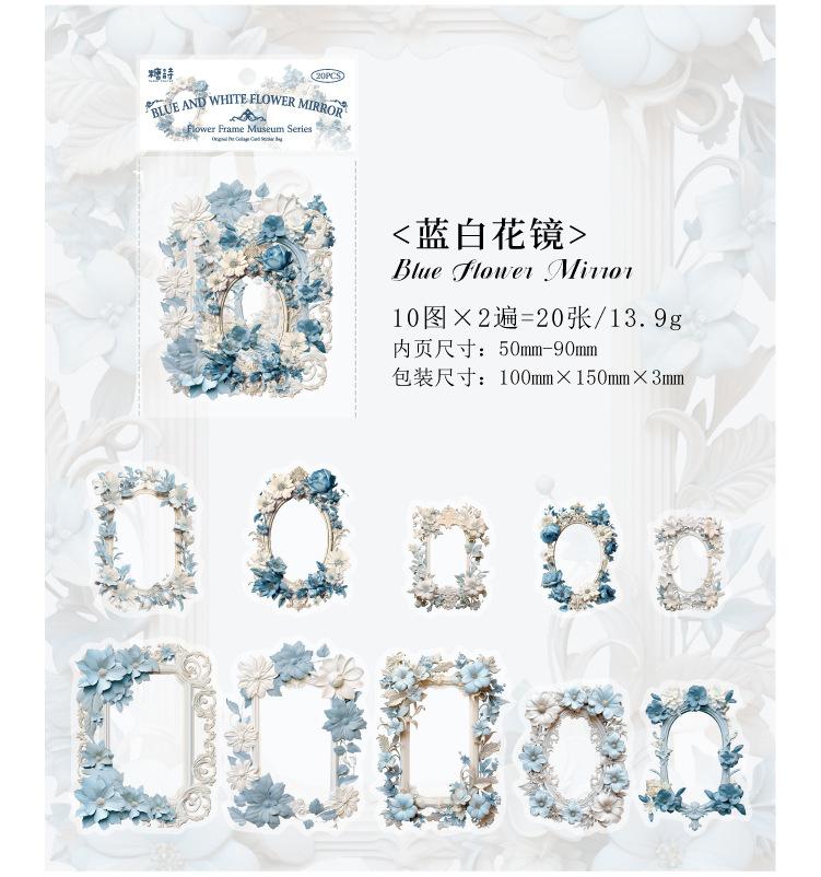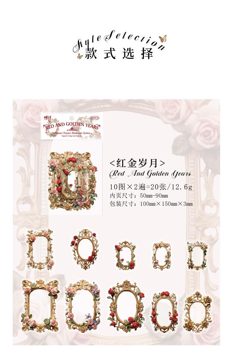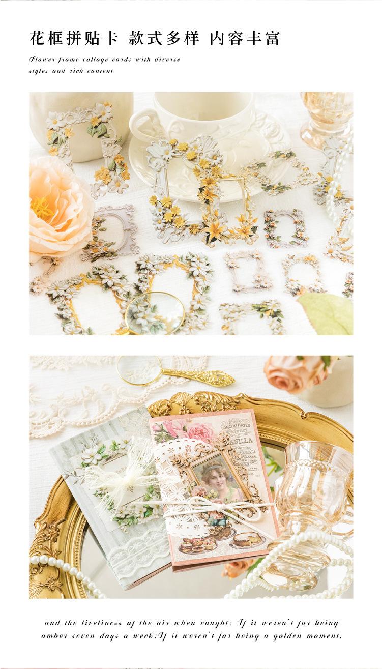 Paquete de 20 pegatinas de PET con marco de flores de Sugar Poetry, serie de museo, cuentas de flores hechas a mano, material de bricolaje, pegatinas decorativas, 6