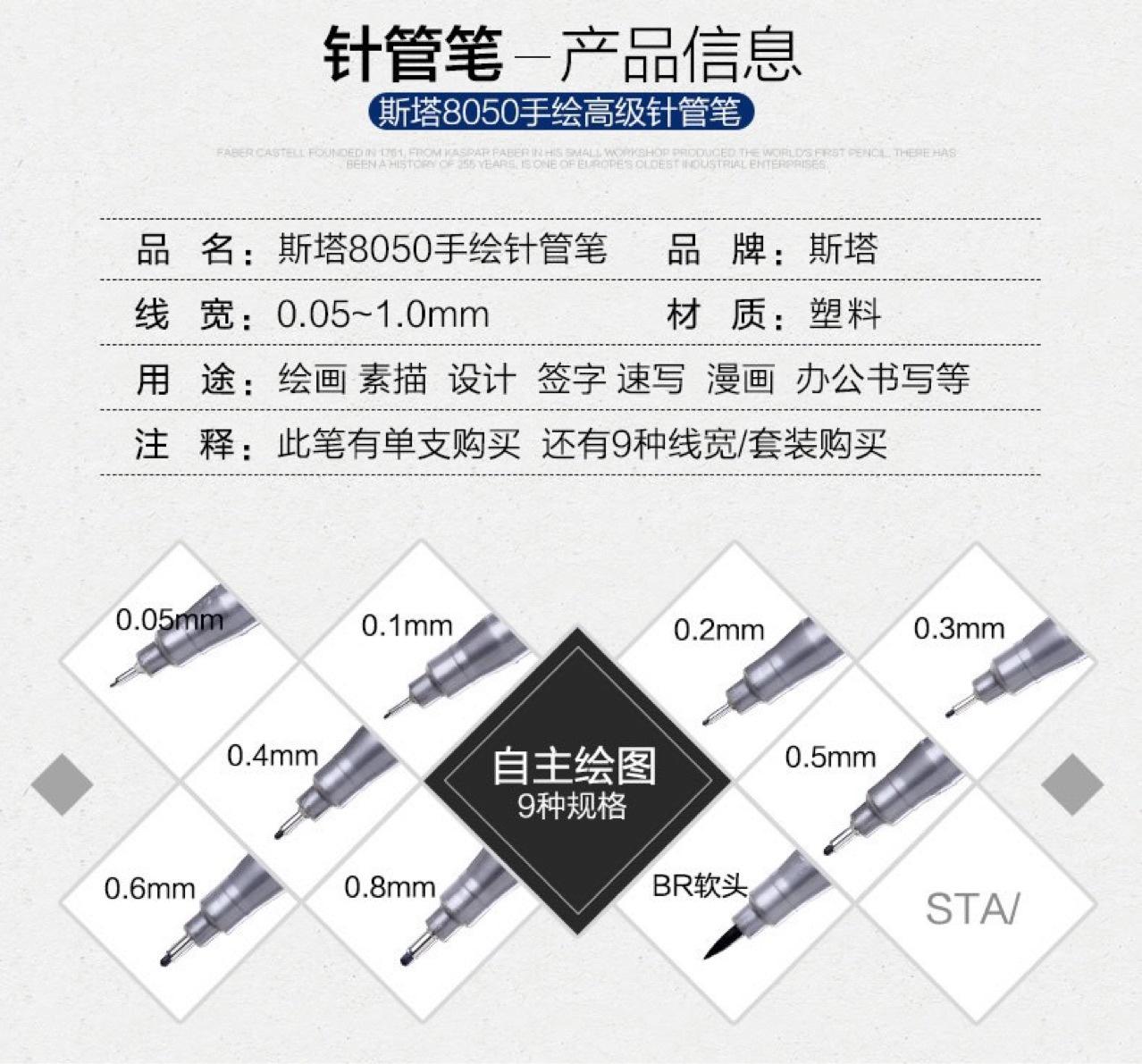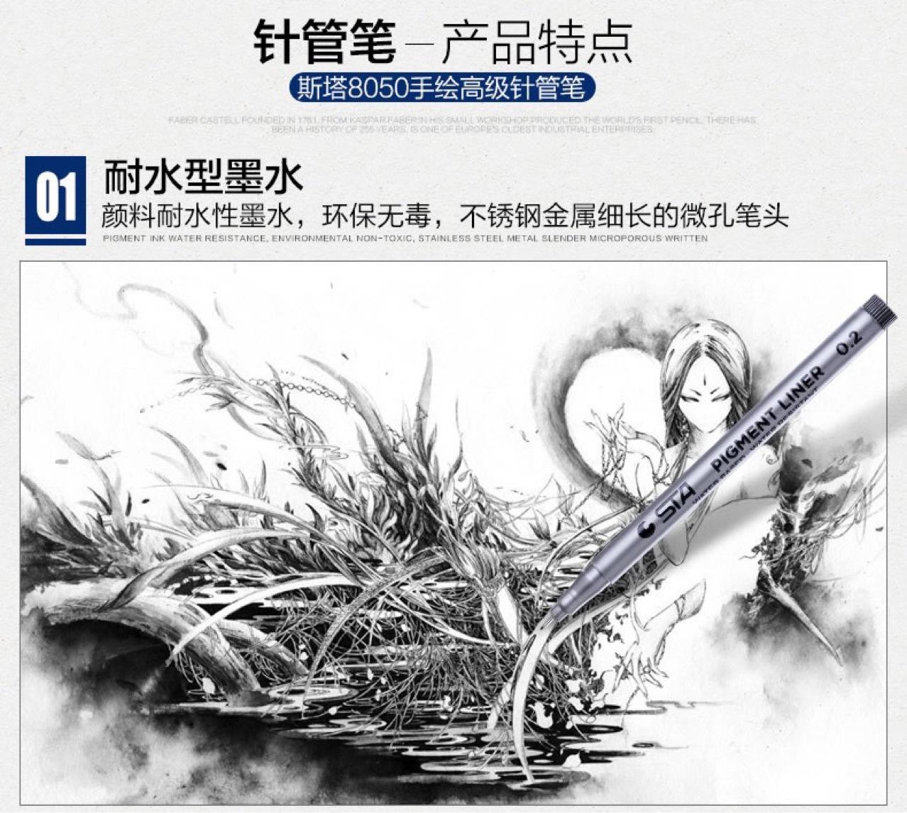 Bolígrafo de aguja Stasta 8050, pintado a mano, con gancho, para dibujo lineal, para estudiantes.