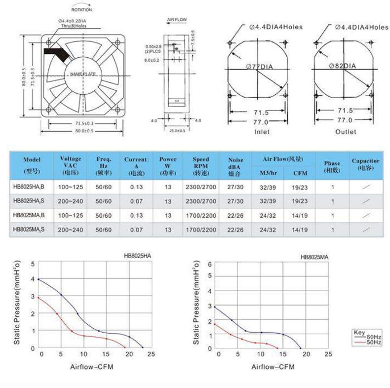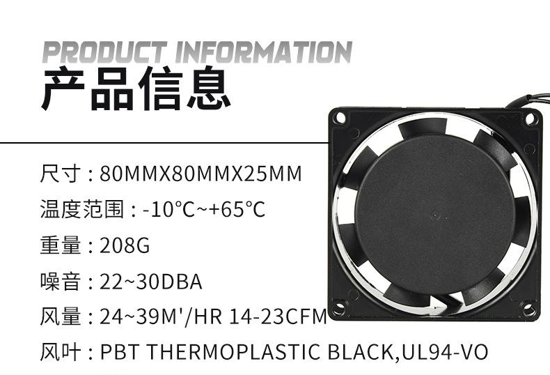 Ventilador 8025 220V CA Ventilador 8cm Enfriamiento de Equipo Ventilación Caja de Distribución Gabinete Caja de Control Ventilador de Enfriamiento