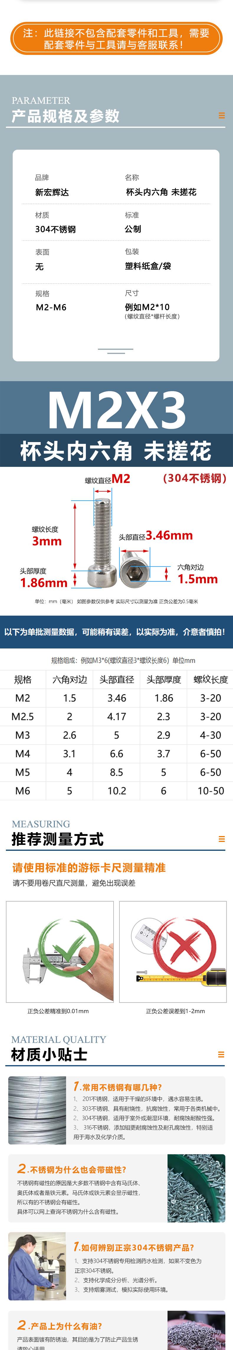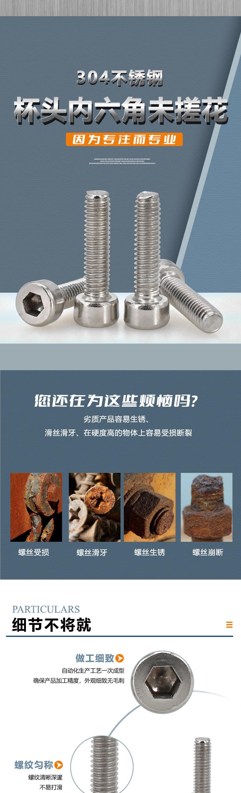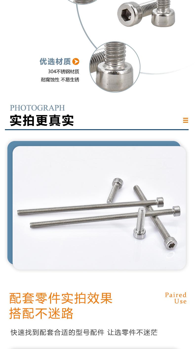 Tornillo de cabeza hueca hexagonal de acero inoxidable 304 sin torsión M2M6, tornillo de perno de diente completo con cabeza cilíndrica hexagonal