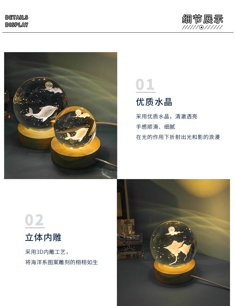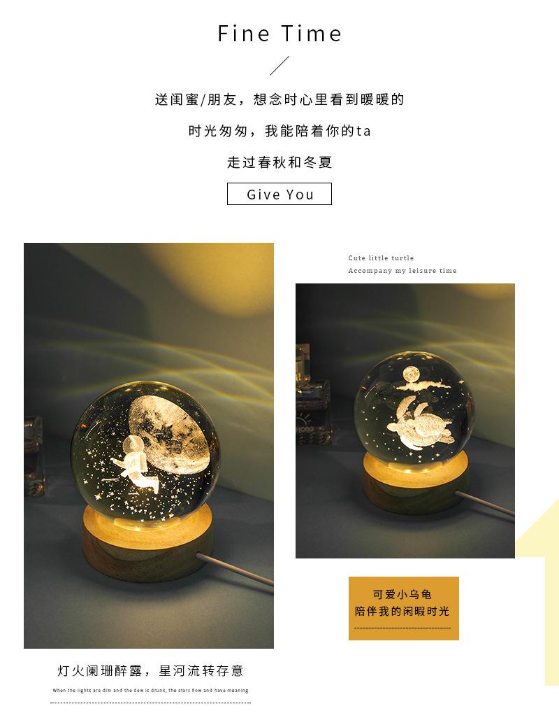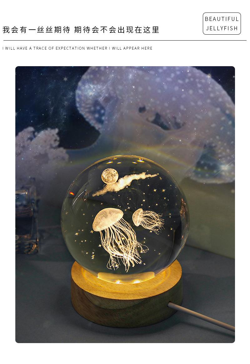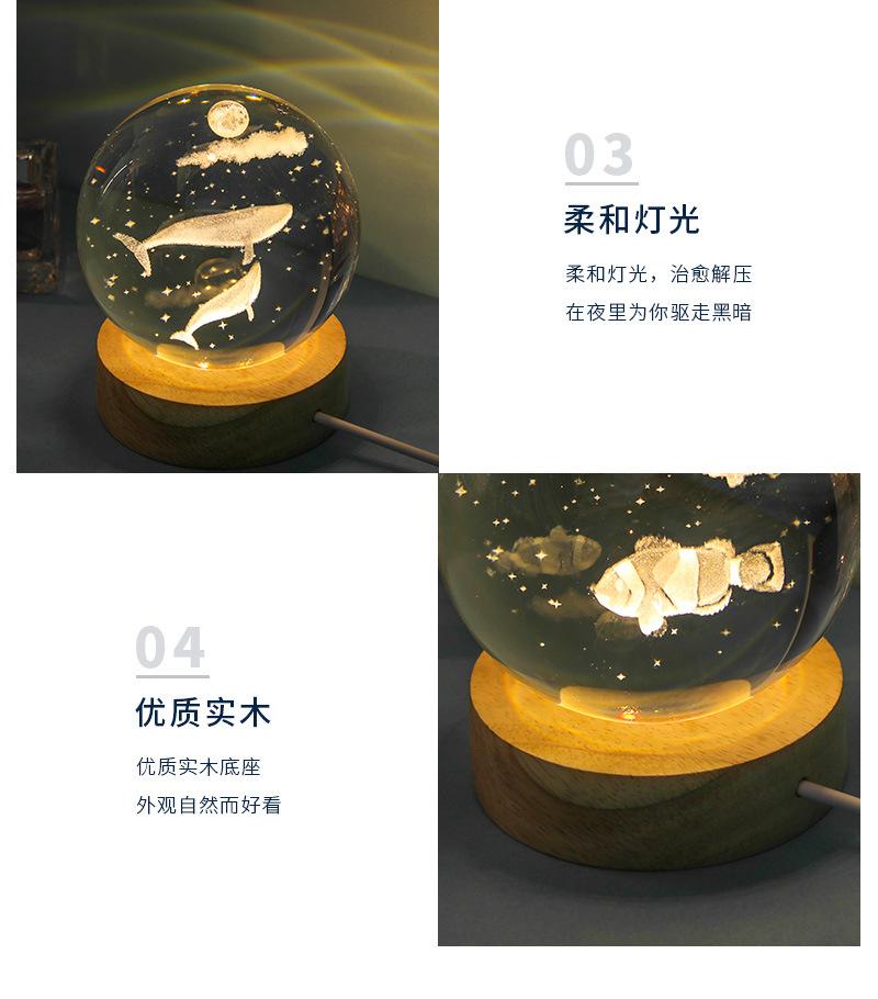 Bola de Cristal Rosa al por Mayor Tallado Interior 3D Luz Nocturna Bola de Cristal Luminosa Regalo Adorno de Escritorio para Regalo de Cumpleaños
