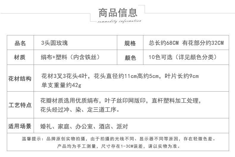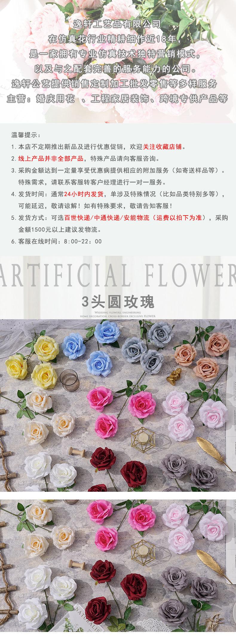 Flor Artificial Redonda de Rosa de 3 Cabezas Flor de Piso para Boda Flor de Seda Decoración para el Hogar Adornos para Sala de Estar Arreglo Floral Utilería para Fotografía