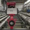 Válvula de mariposa neumática de acero inoxidable con revestimiento de flúor D671F-16Q, válvula de placa de acero inoxidable DN25, válvula de mariposa de PTFE DN50
