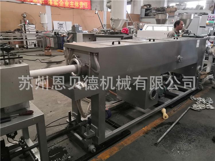 2. La línea de producción de recubrimiento de plástico incluye principalmente un bastidor de desbobinado, un dispositivo de enderezamiento y centrado, una extrusora, un molde de recubrimiento, un tanque de agua de enfriamiento, una máquina de tracción, una máquina de corte (según el producto), un bastidor de corte, etc.