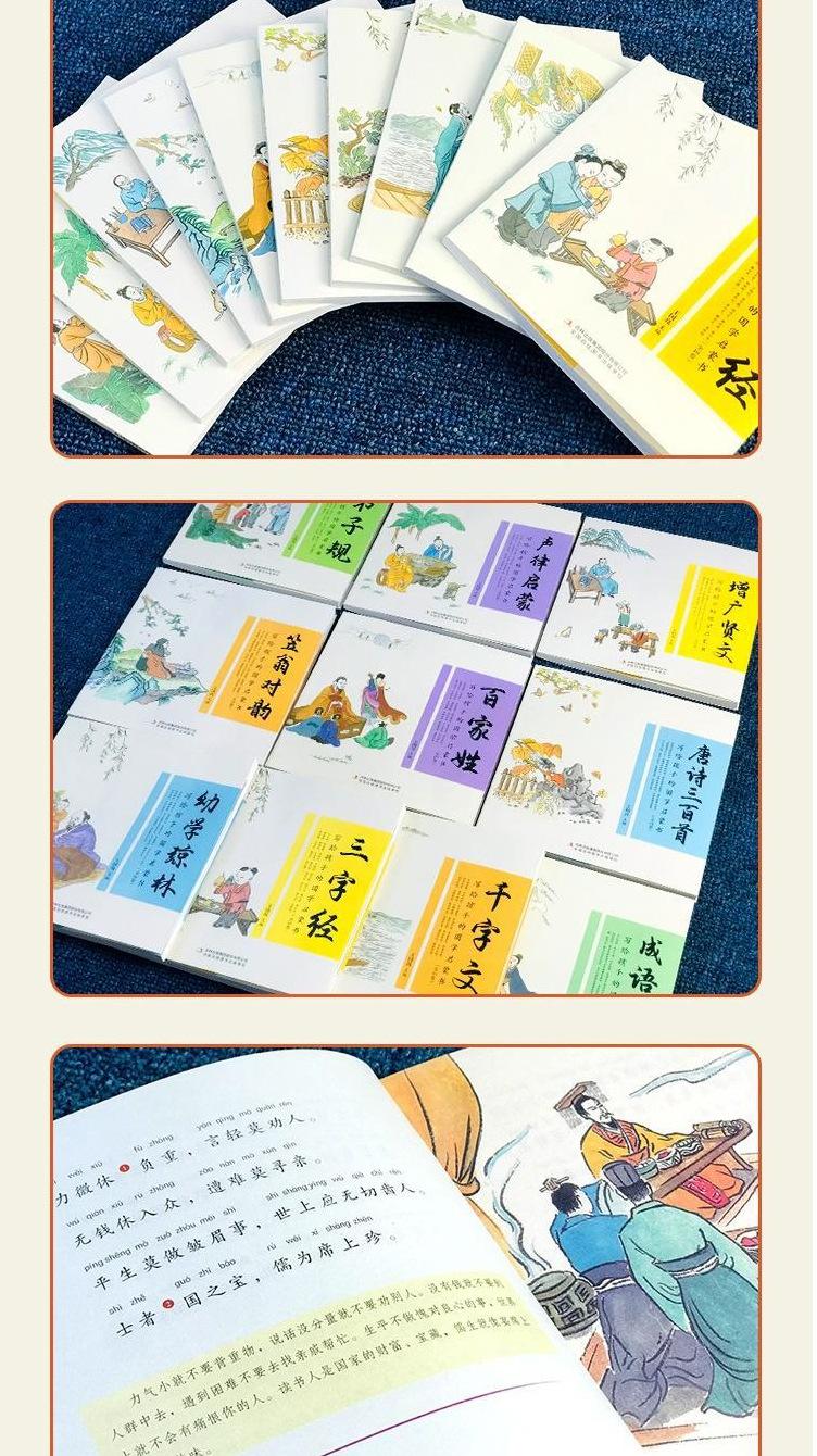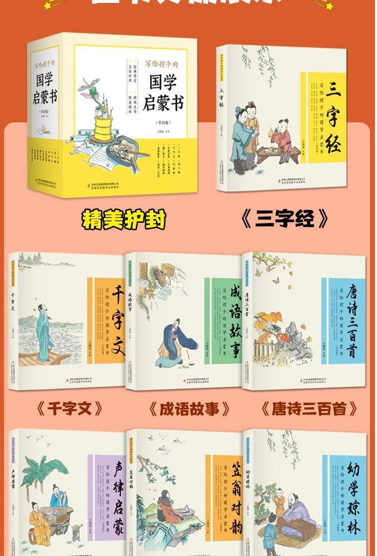 Un conjunto completo de 10 libros para niños, libros de la Ilustración china, edición de pintura a color fonética para niños, libros de cultura tradicional al por mayor
