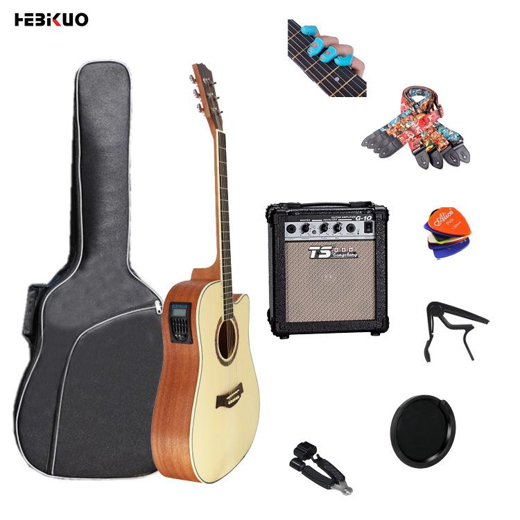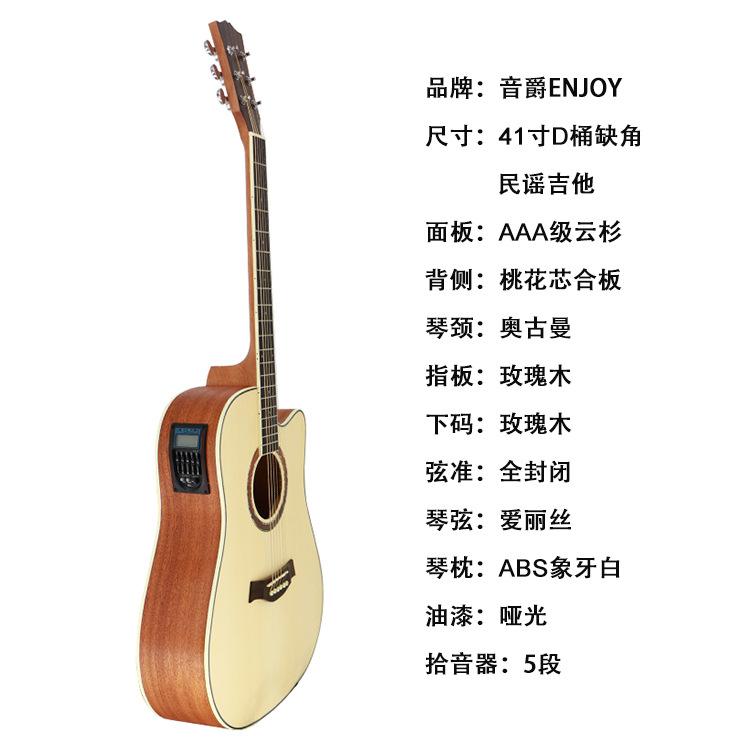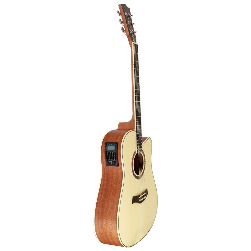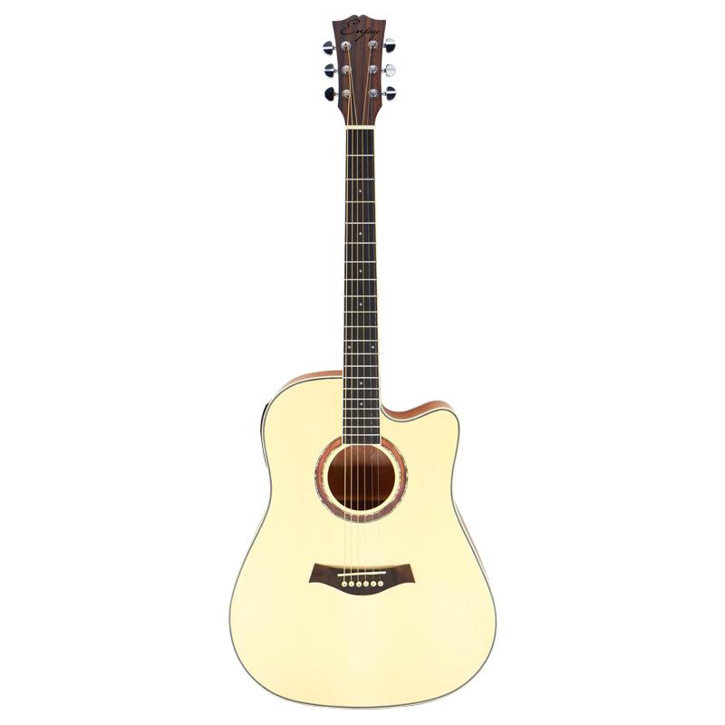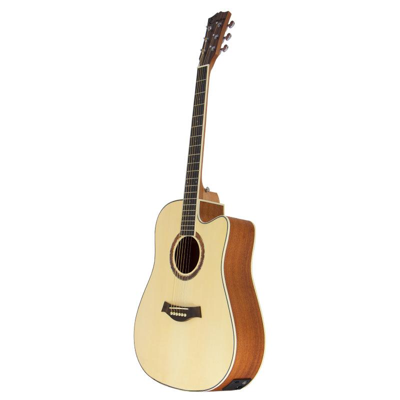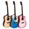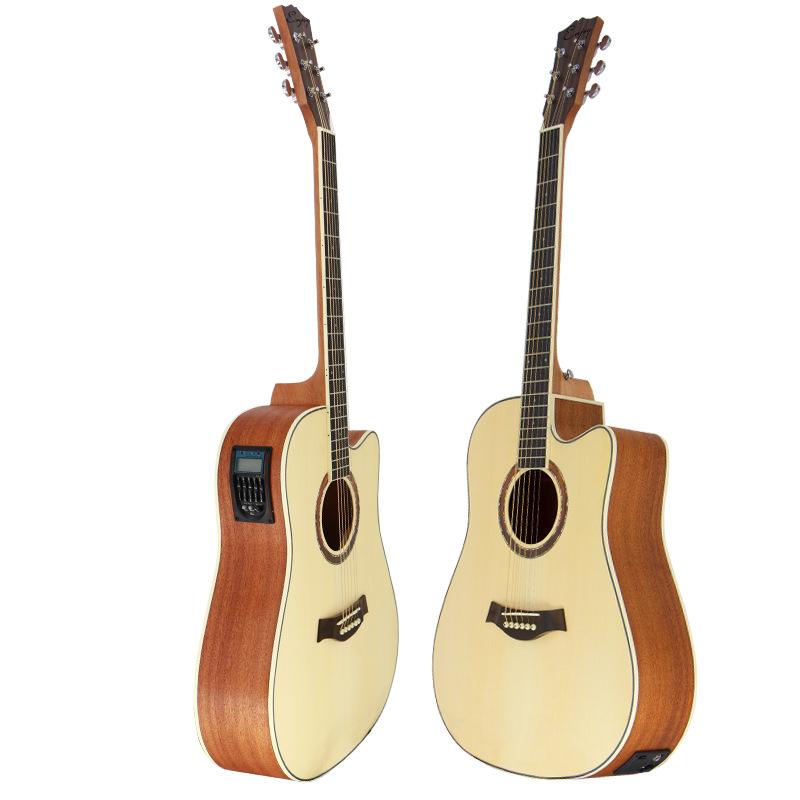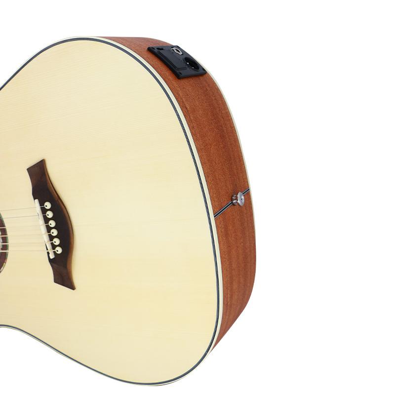 Guitarra folk transfronteriza de 41 pulgadas con cuerpo en D, instrumento musical sin ángulo, venta al por mayor, con núcleo de abeto mate brillante y flor de durazno, caja eléctrica.