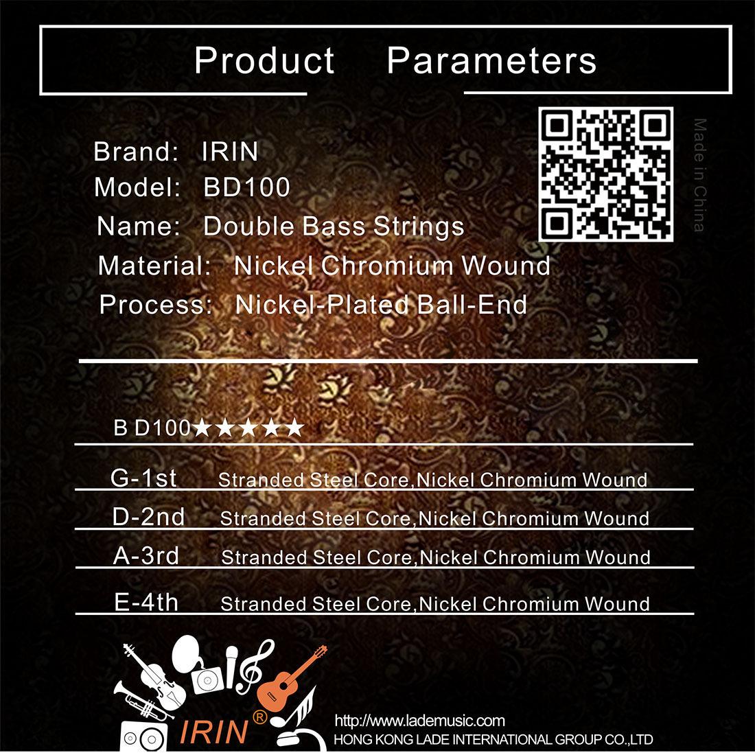 Nombre del producto:Cuerdas para contrabajo IRIN aleación plateada BD100 bolsa de PVC (4 cuerdas en una sola bolsa)
