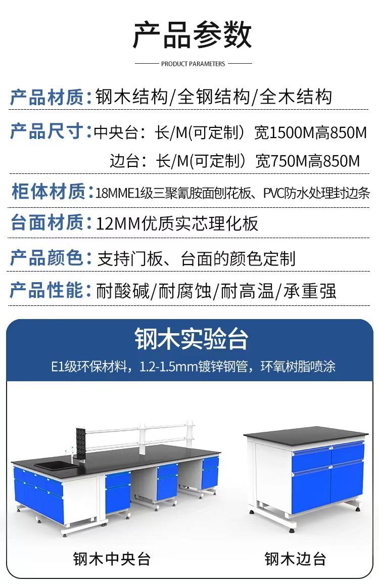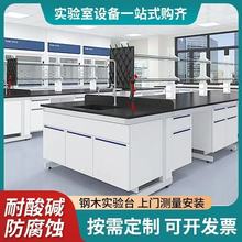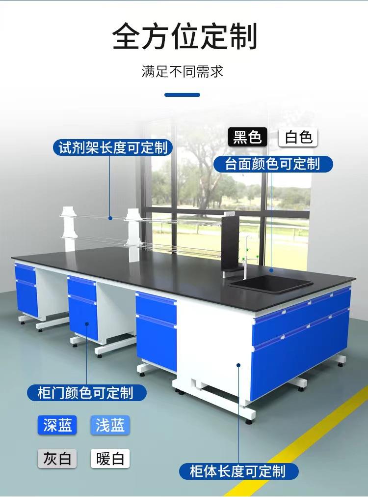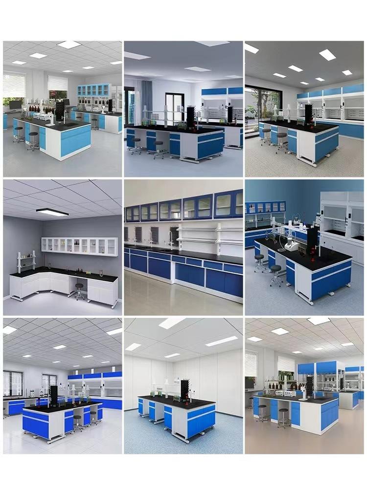 Mesa de operación de laboratorio de acero-madera mesa central de acero completo mesa lateral resistencia a ácidos y álcalis fabricante de sistema de ventilación