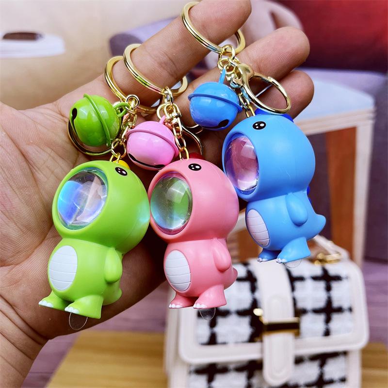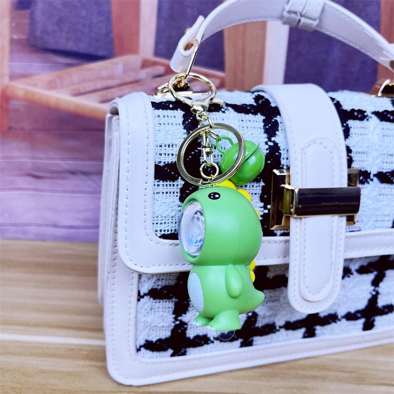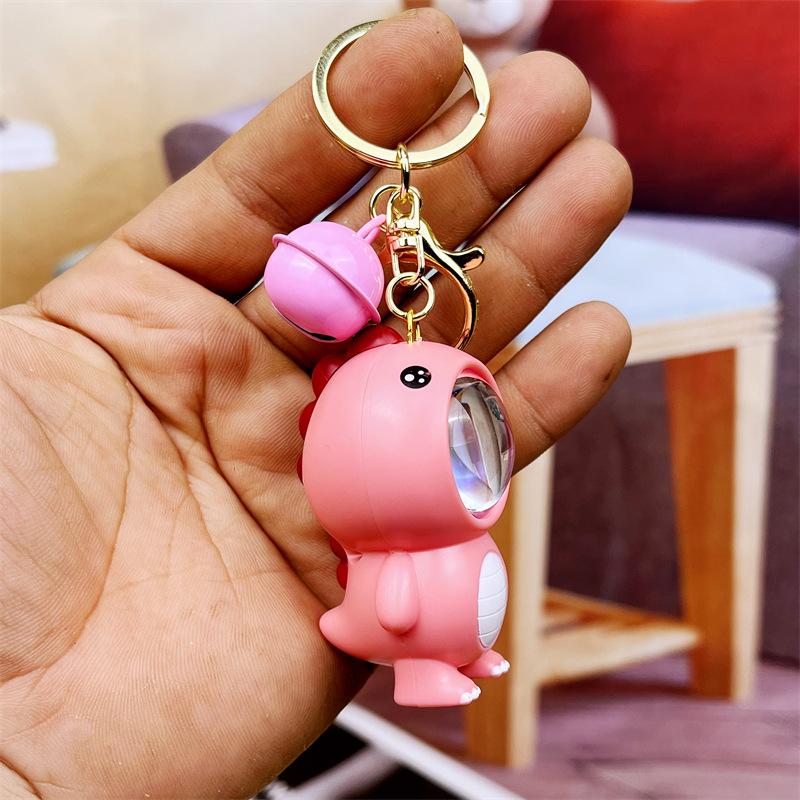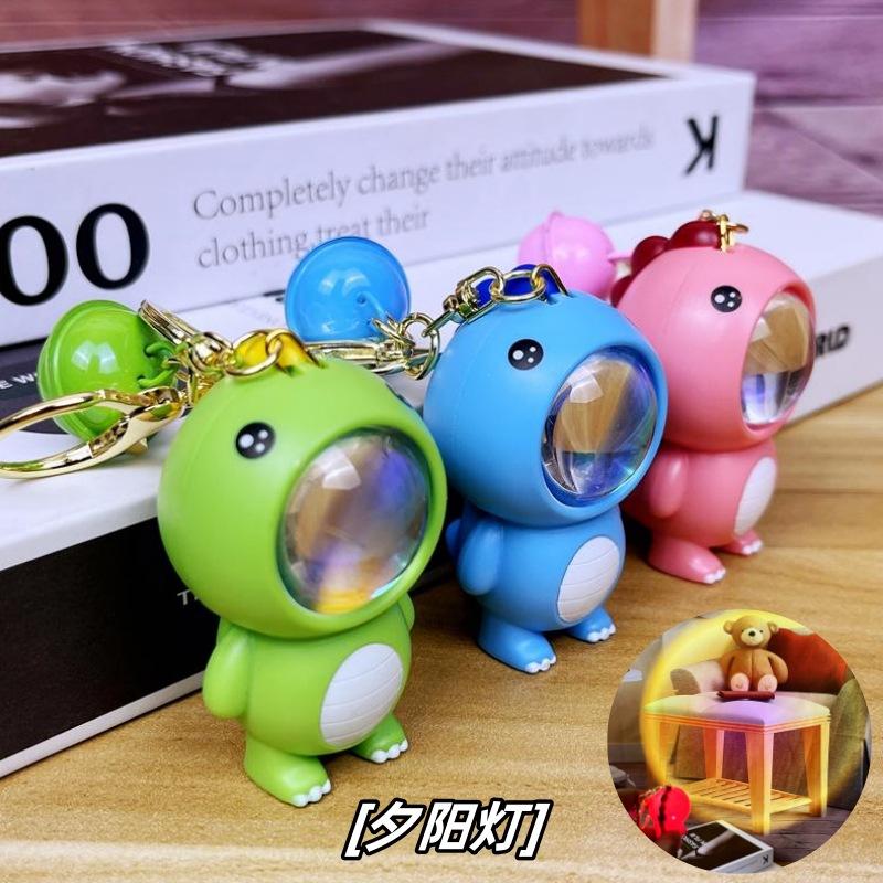 Luz de atardecer llavero colgante luminoso de dinosaurio pequeño al por mayor caricatura Jurásico lindo llavero de muñeco joyería pequeña