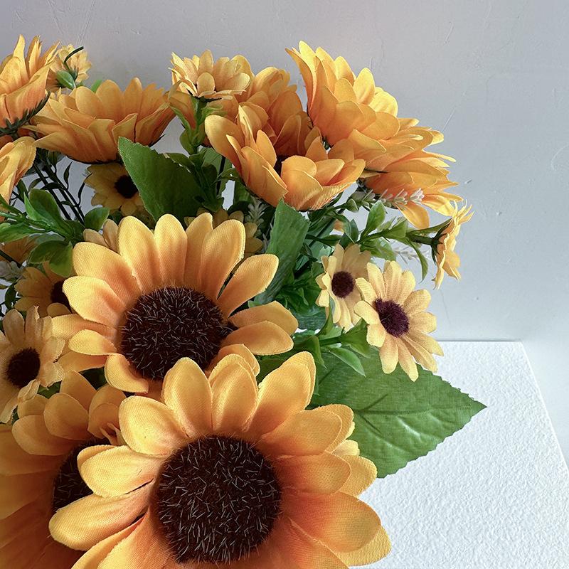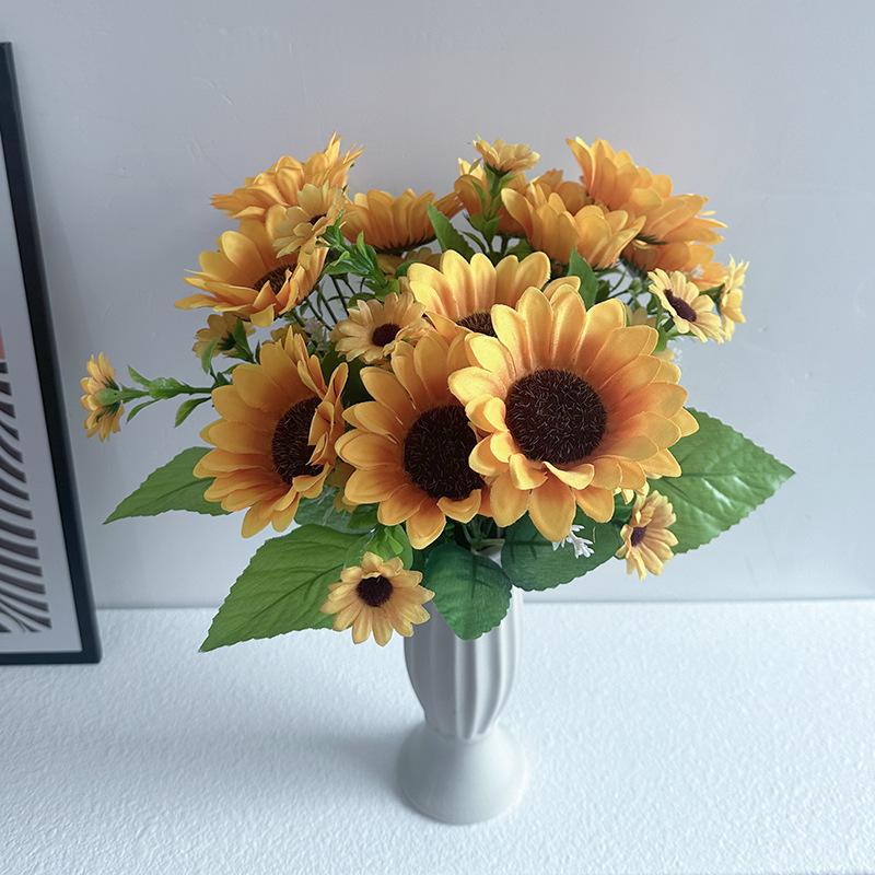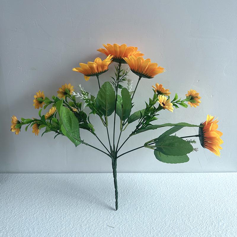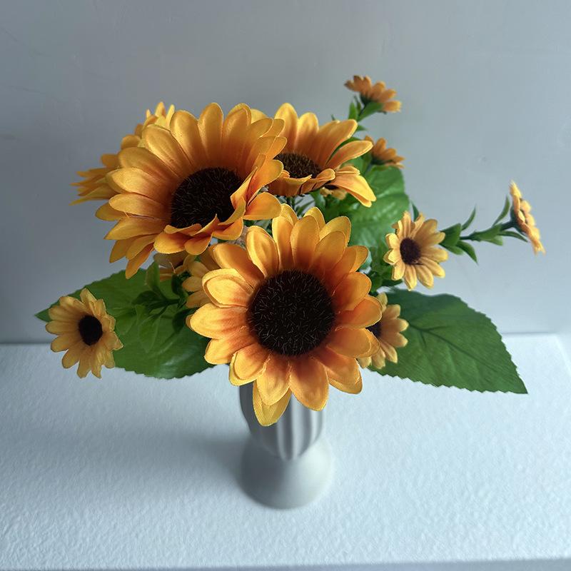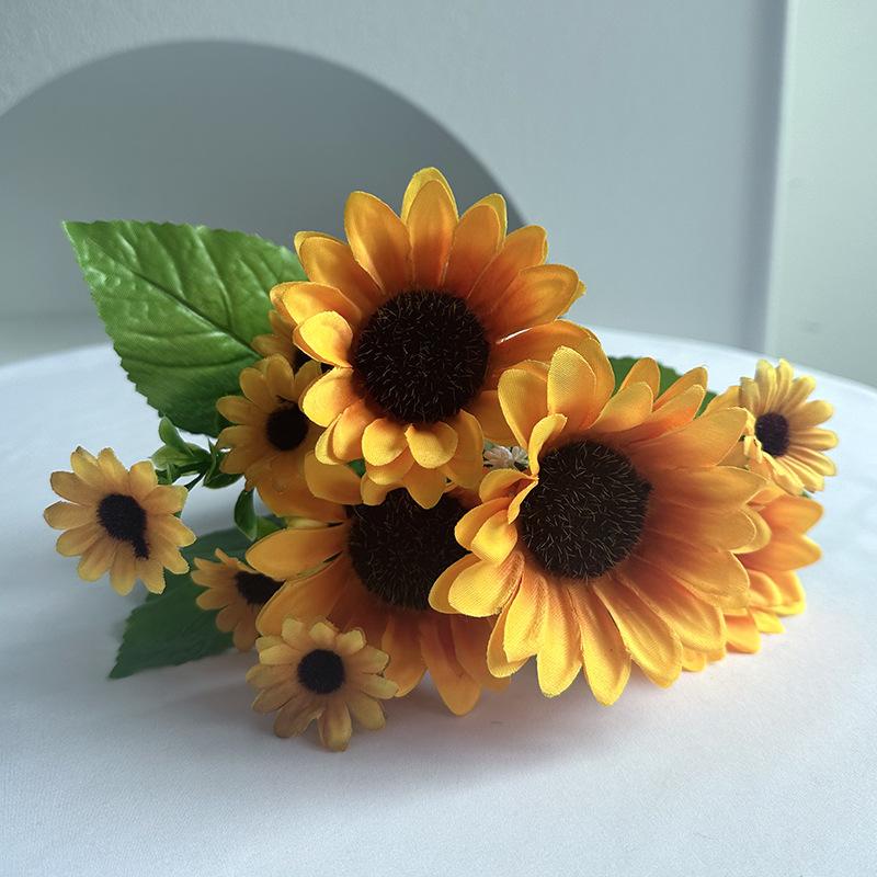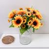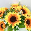 Ramo artificial de 7 tenedores de girasol, flor artificial de girasol, flor de seda, decoración de mesa de sala de estar, venta al por mayor transfronteriza