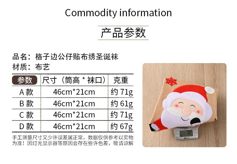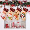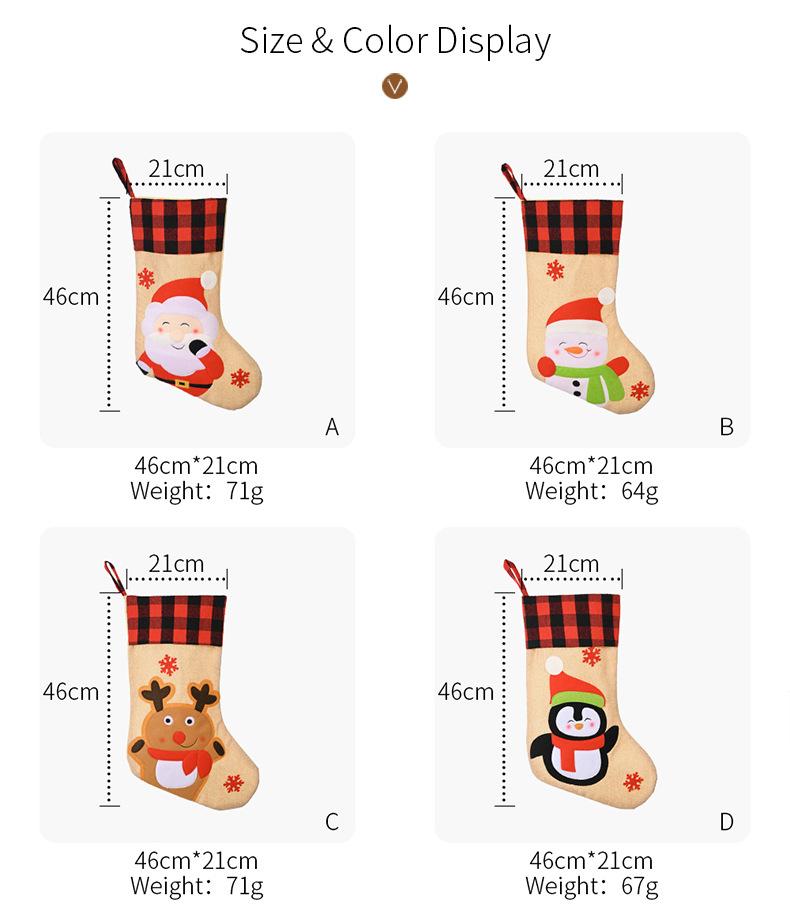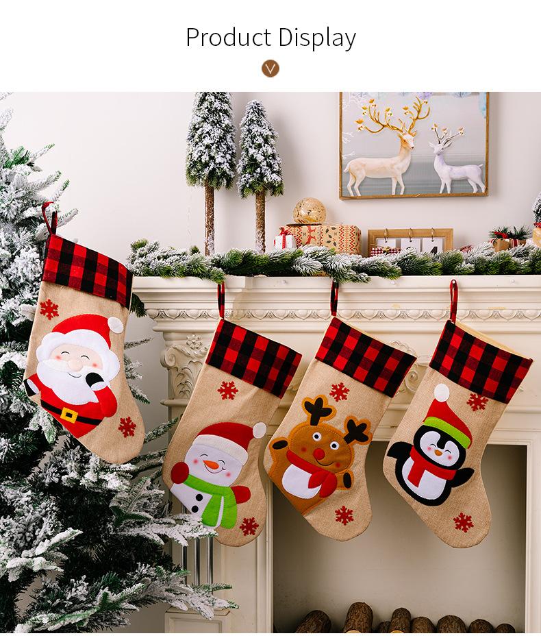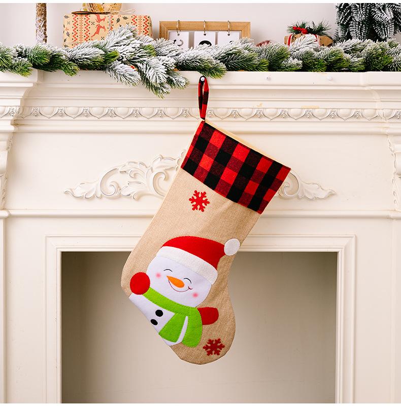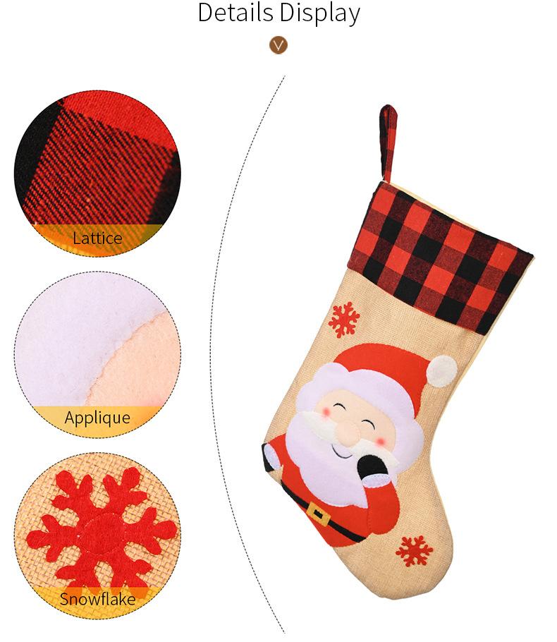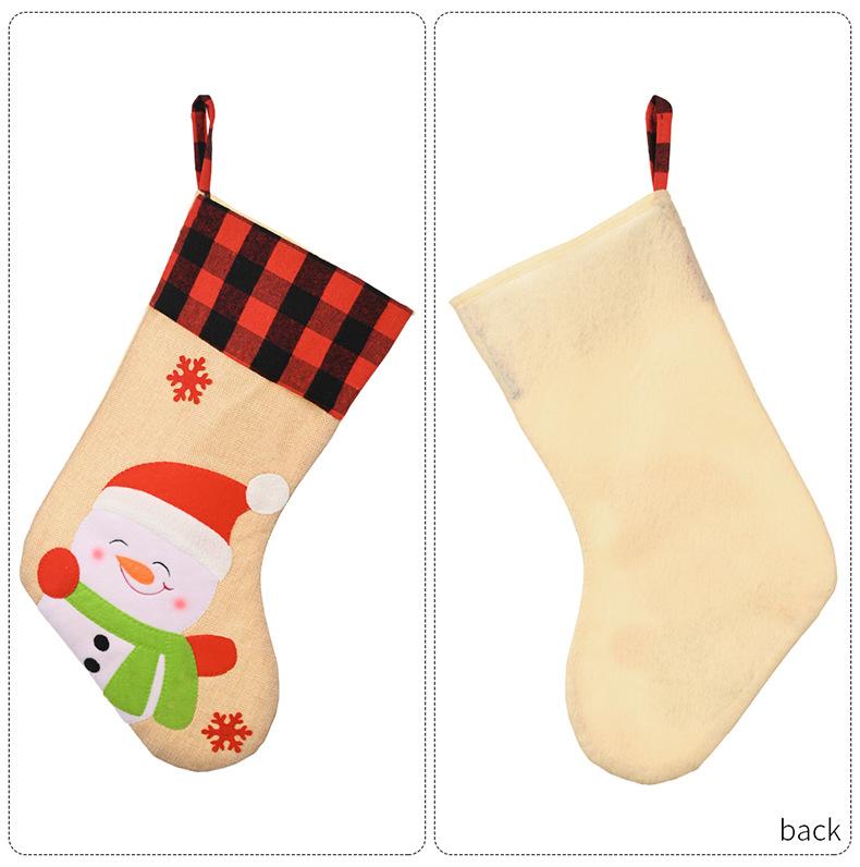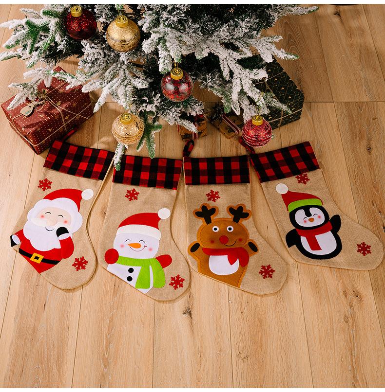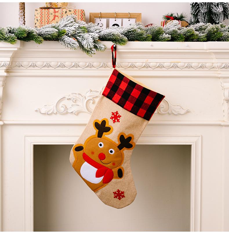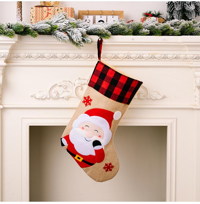 Nuevos suministros de decoración navideña transfronterizos, calcetines navideños de lino a cuadros rojos y negros, bolsa de regalo para niños, calcetines navideños grandes