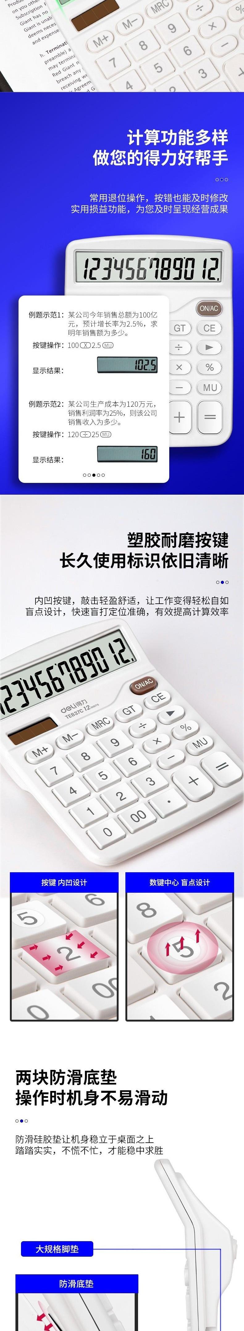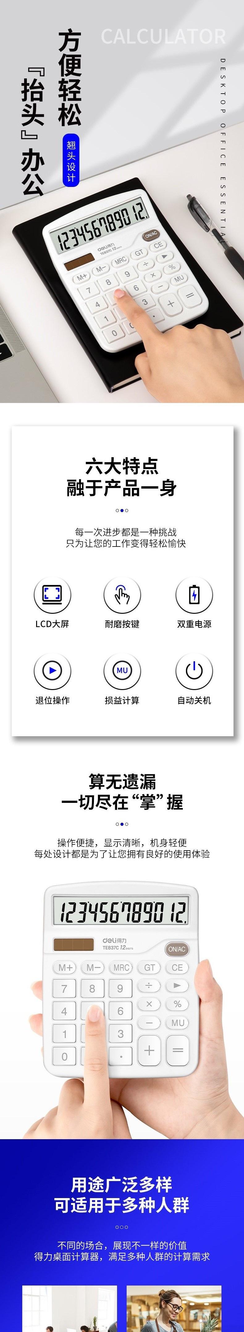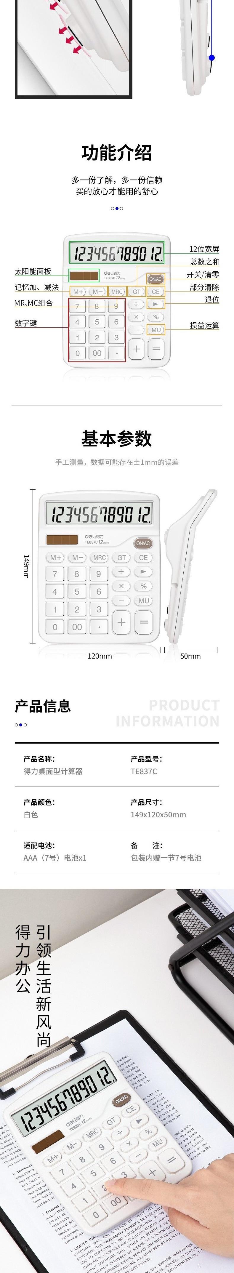 Calculadora Deli TE837C para oficina, finanzas, estudiantes, pantalla grande, portátil, doble potencia, sencilla, blanca, computadora