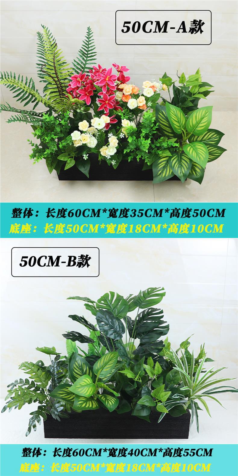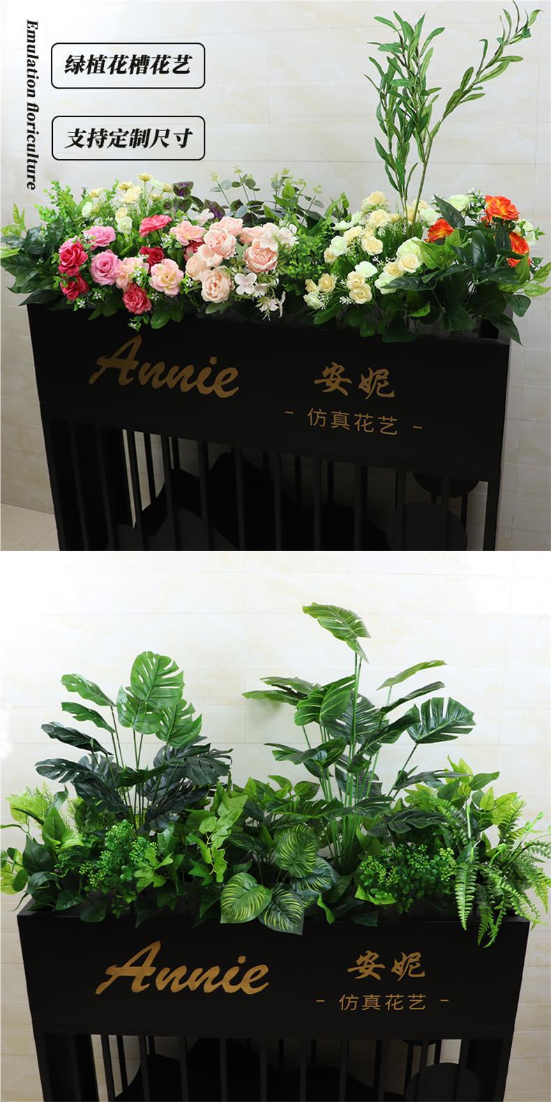 Combinación de traje de planta verde artificial maceta artificial partición Caja de Flores decoración de restaurante decoración de pared de flores y hierba paisaje floral biónico