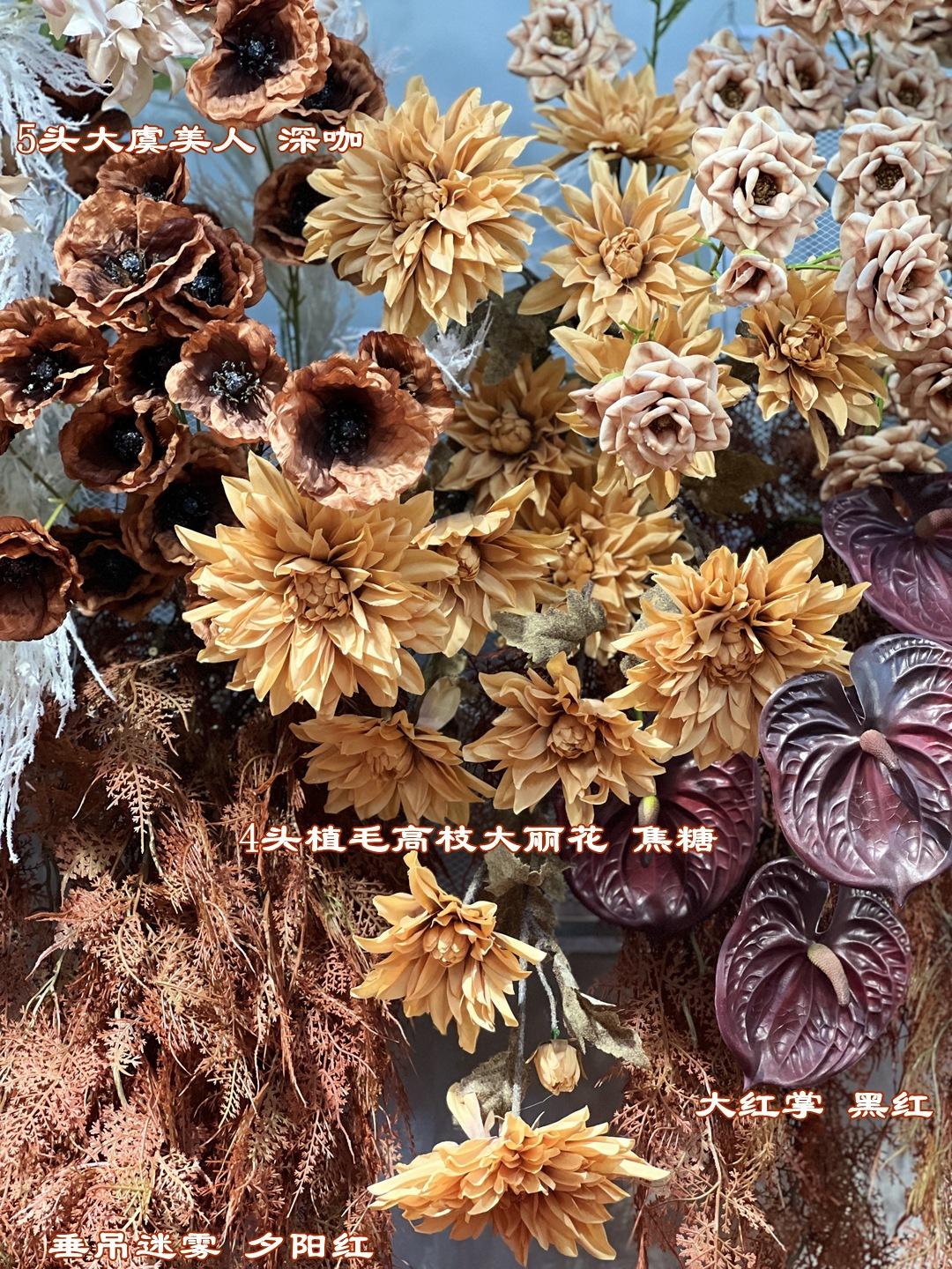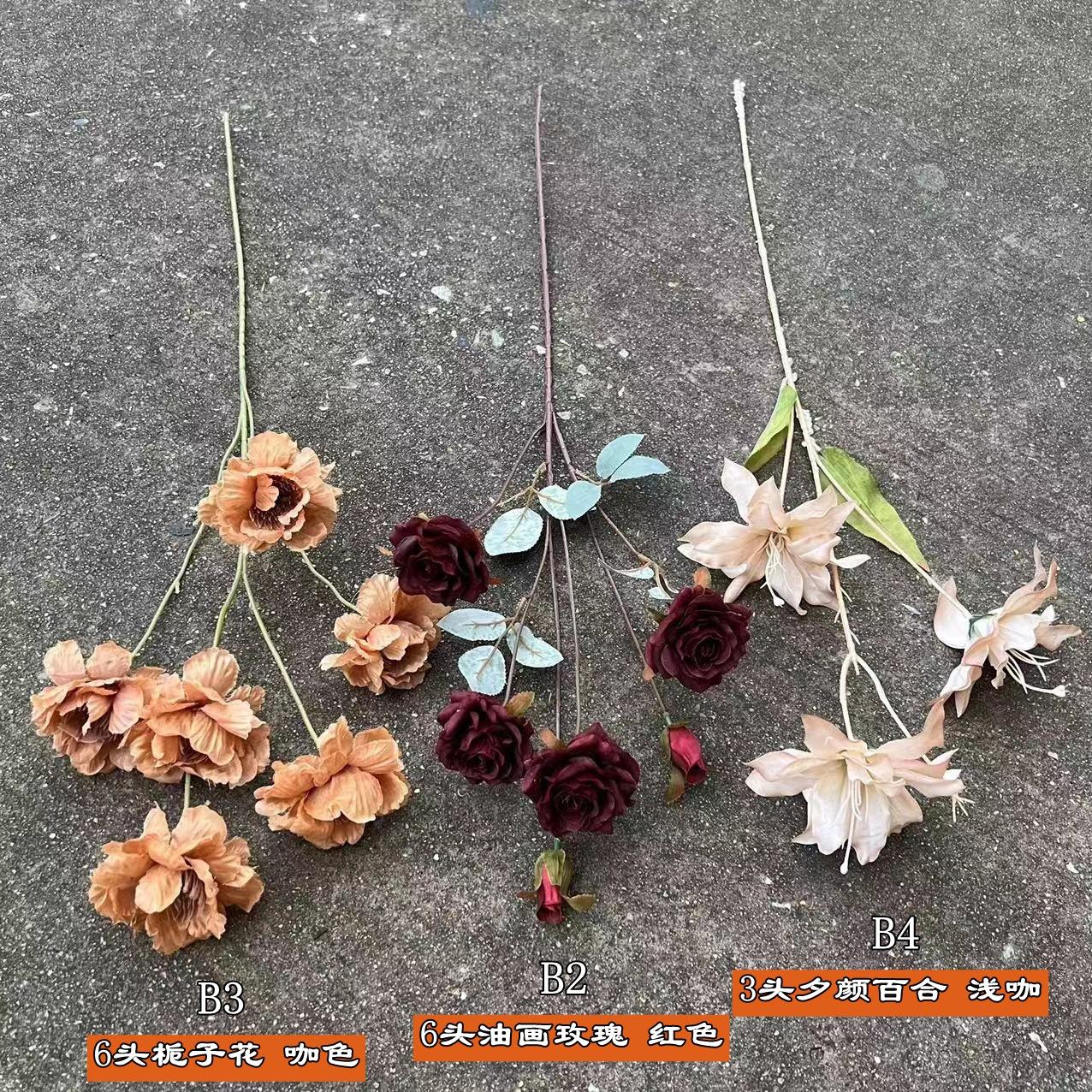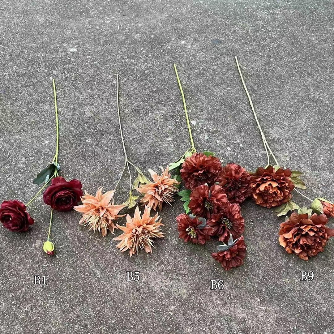 Referencia de combinación de flor artificial de boda caramelo retro Material floral seleccionado toma real Pedido mínimo de 10 piezas por color.