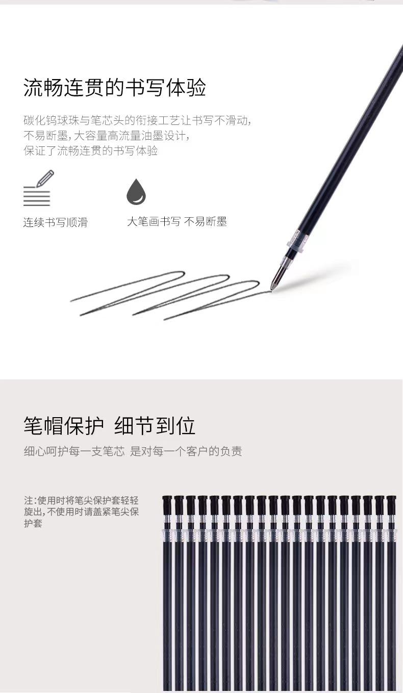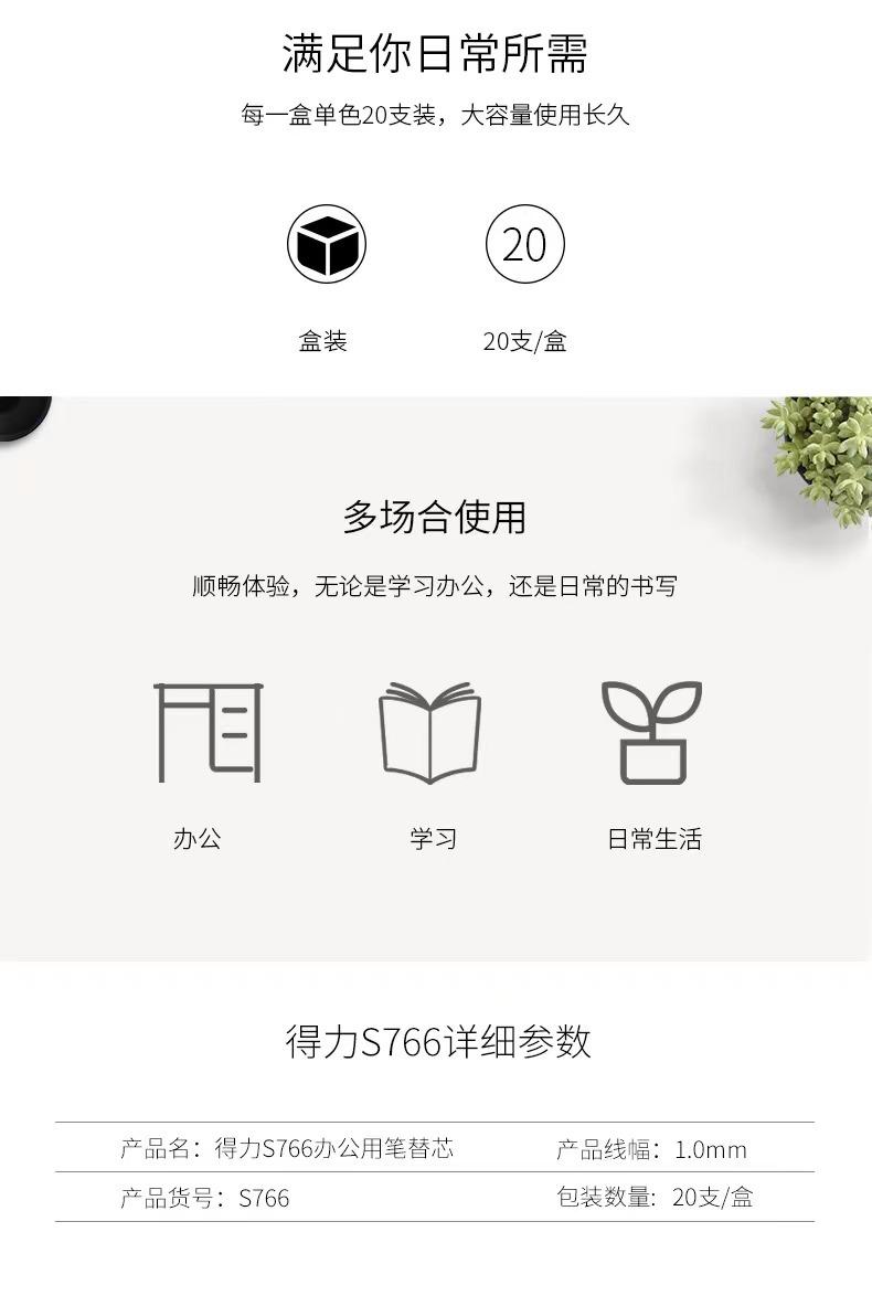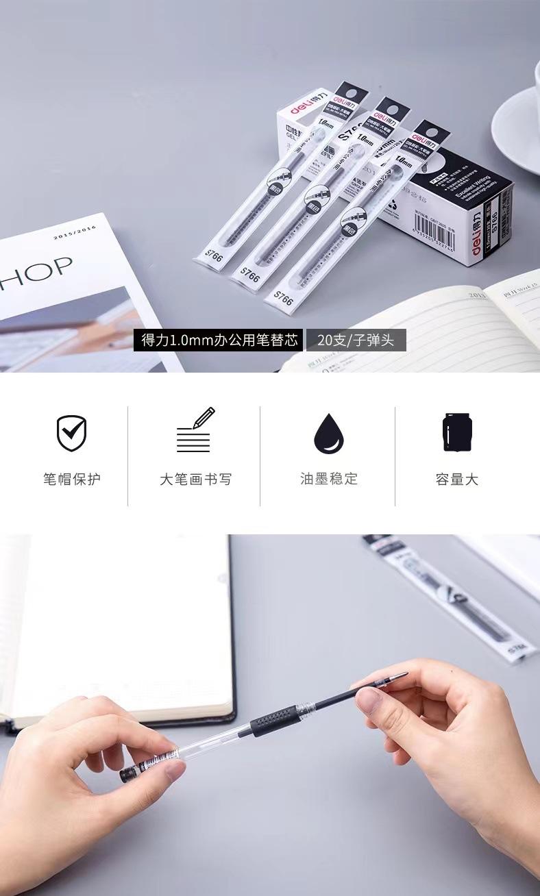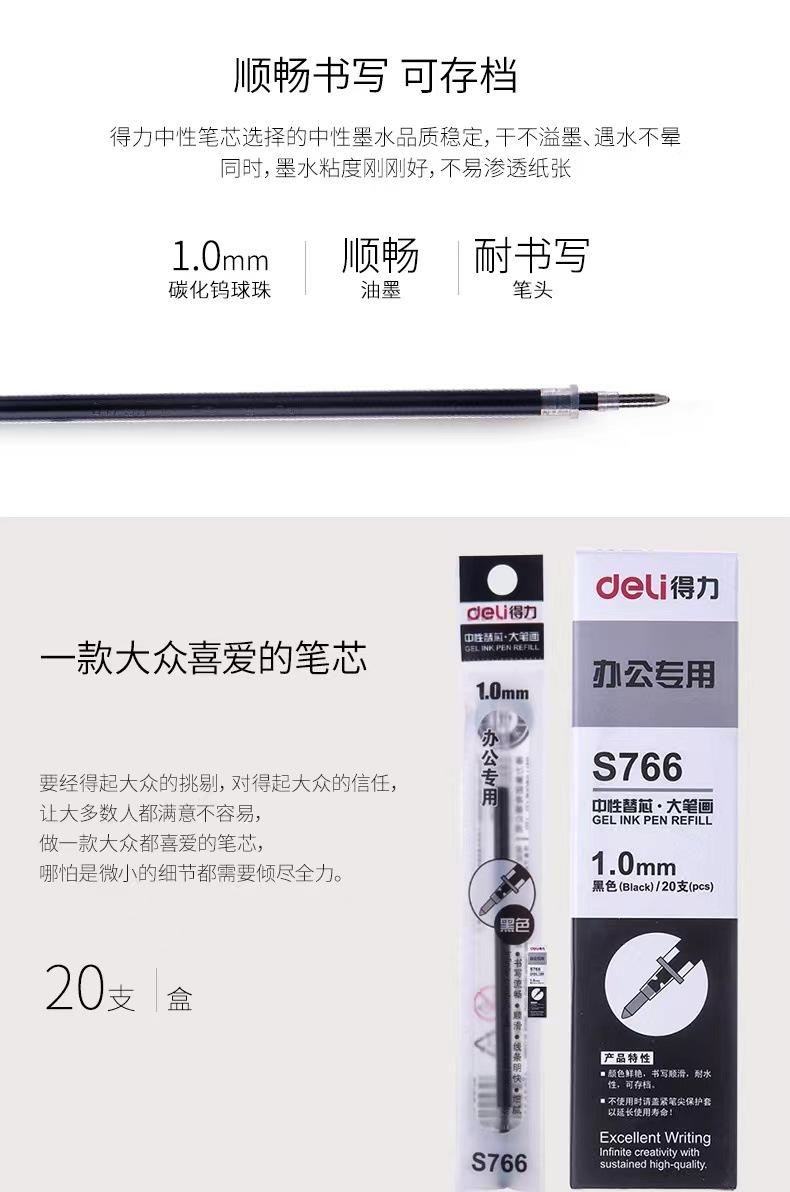 Deli S766 Recarga Neutra 1.0mm Recarga Retráctil Gran Capacidad Tinta Continua Bala Negro 20/Caja