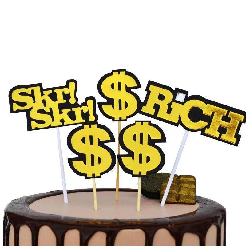 Dólar estadounidense dorado de doble capa, dólar estadounidense SKR, oro negro, RICH, símbolo de letra de dinero, dinero para hornear, rollo de decoración para pasteles.