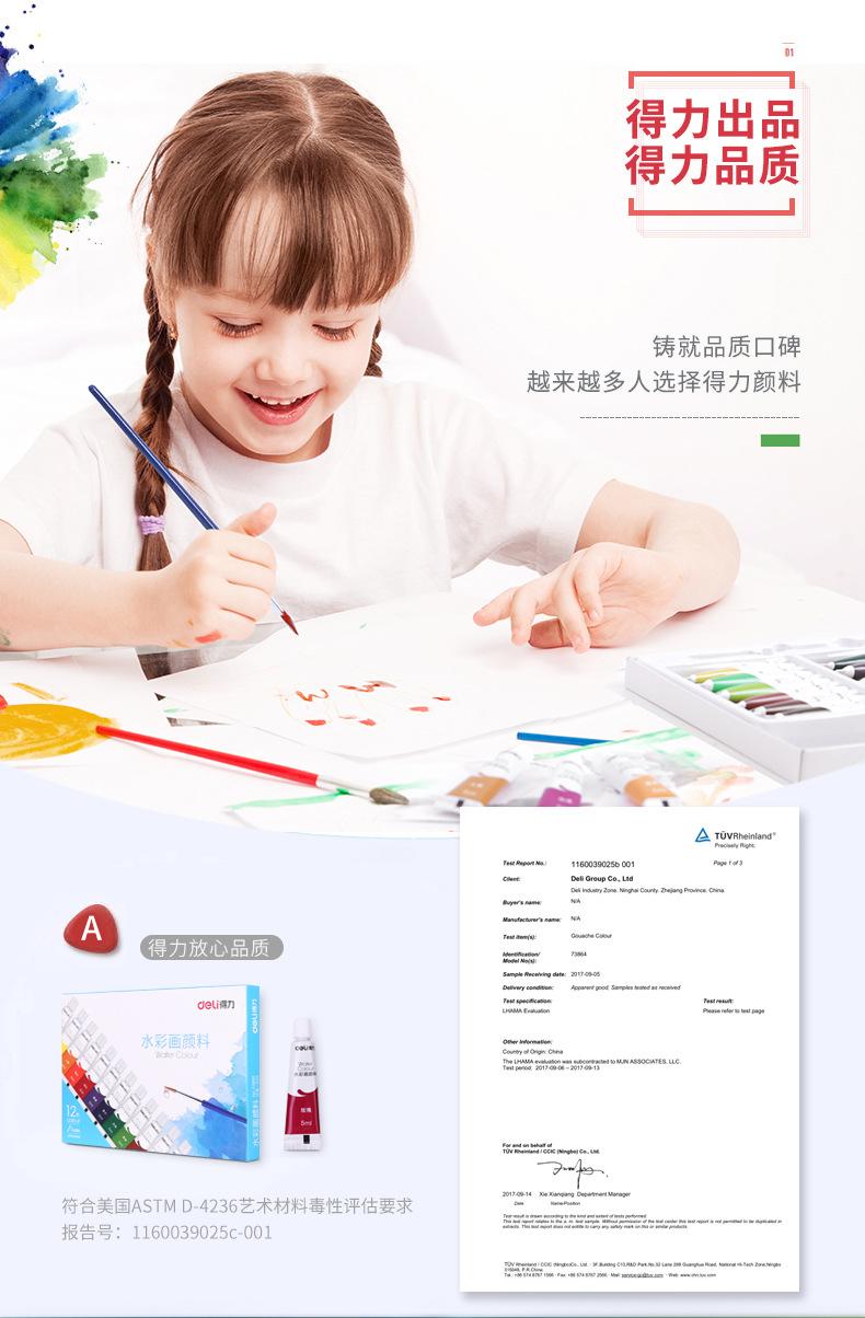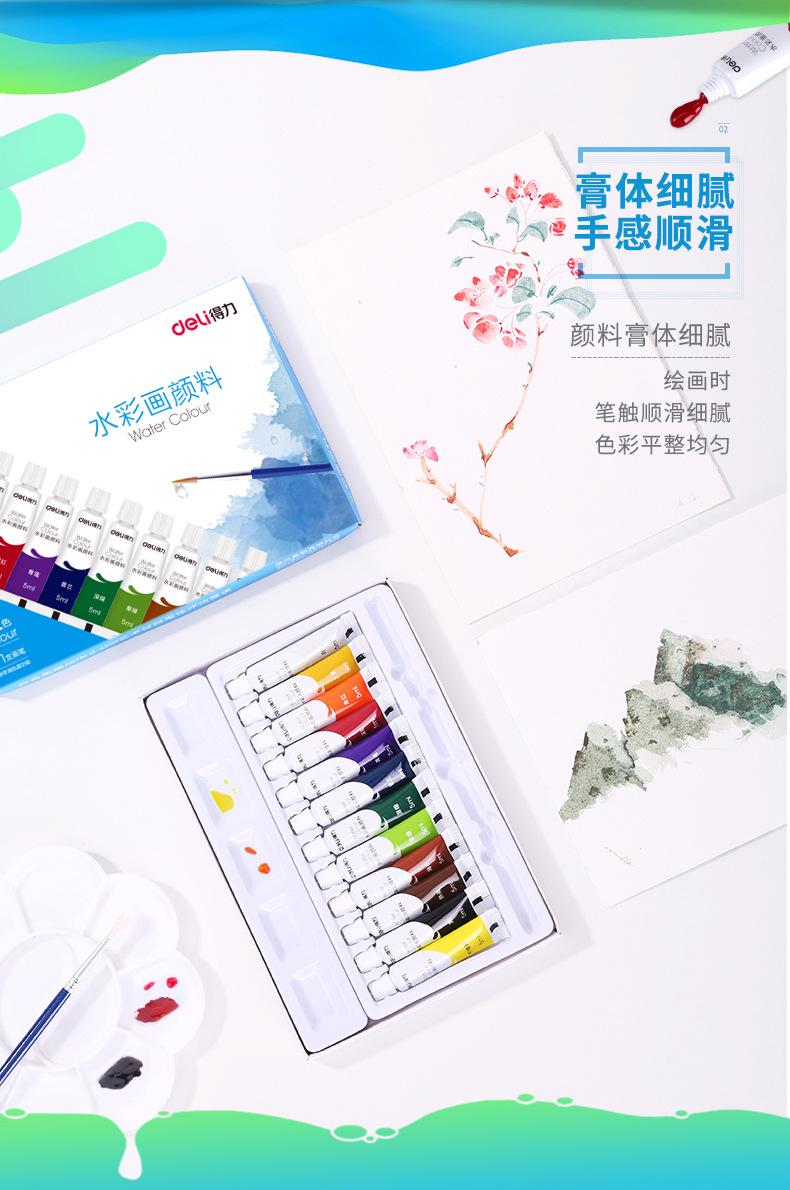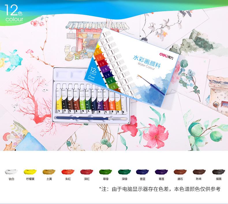 Set de Pintura Gouache Acuarela Deli Pintura Principiante Niños Estudiantes de Primaria Pluma para Pintar Color Tubo Ecológico
