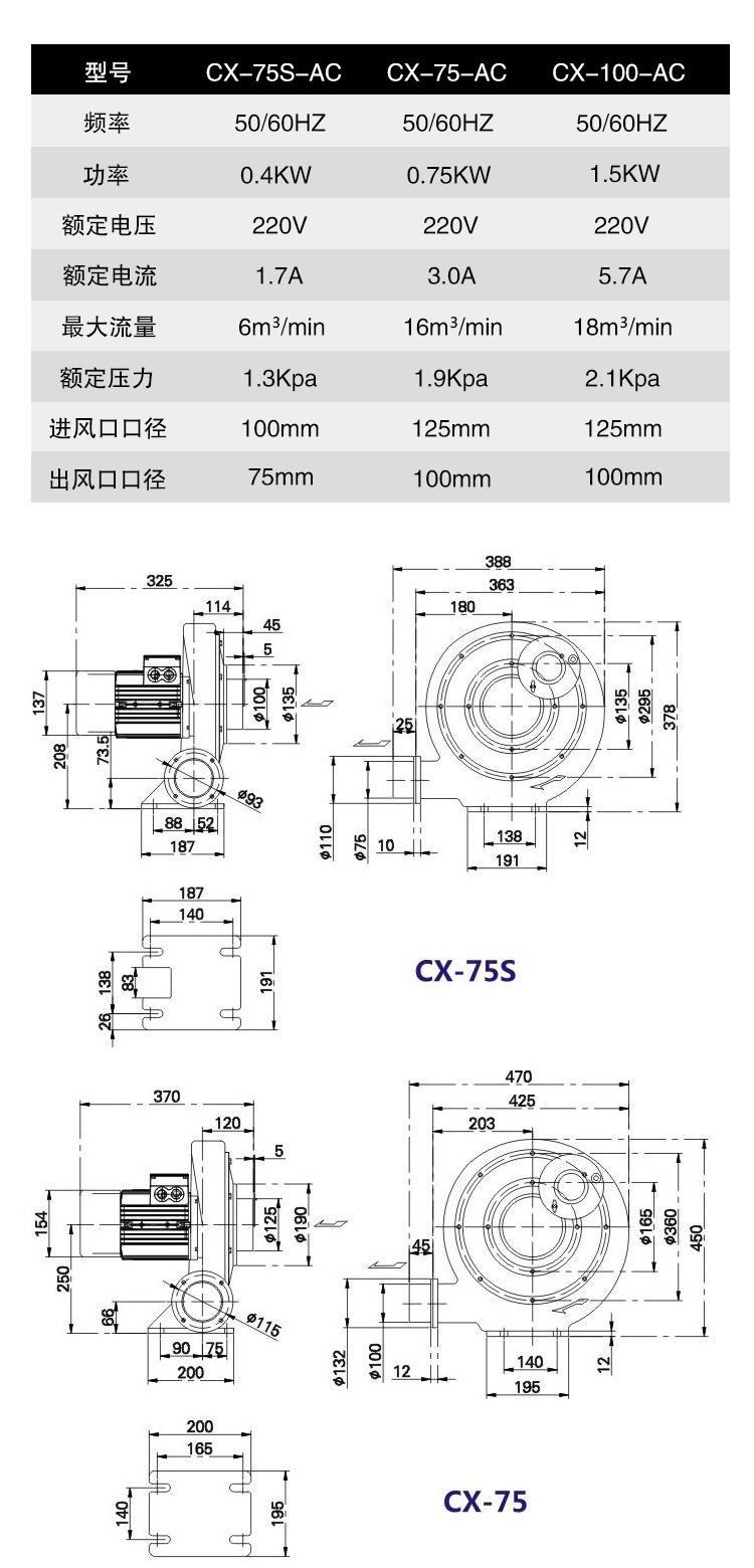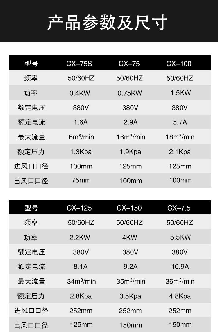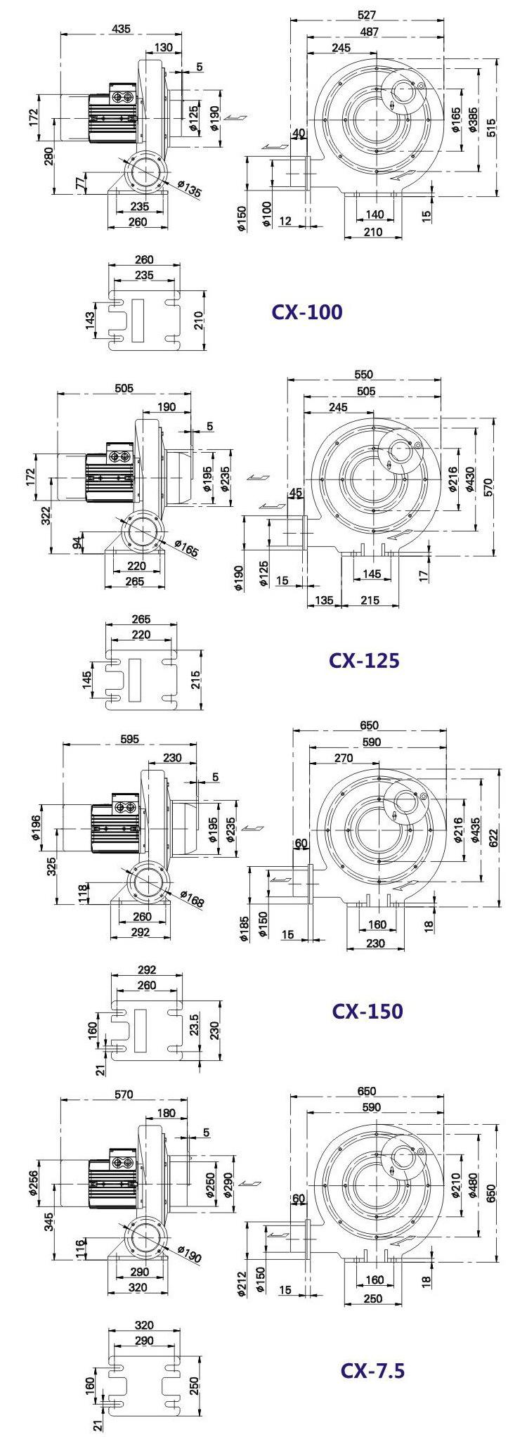 Venta directa de ventilador de media presión de aire de 2200 W CX-125A, soplador de media presión tipo turbina para horno de combustión.